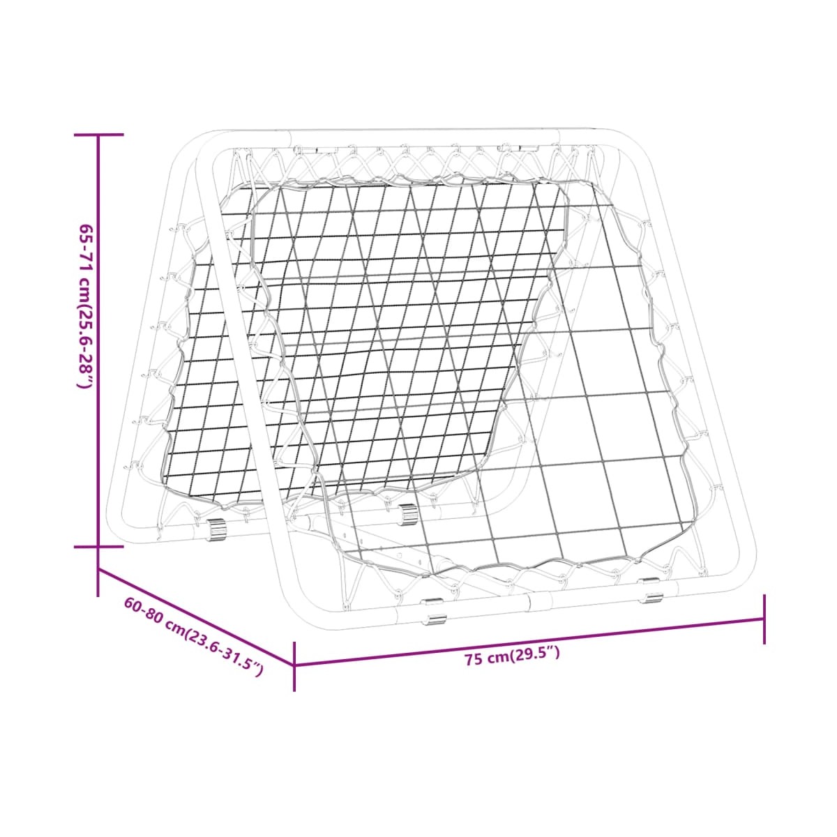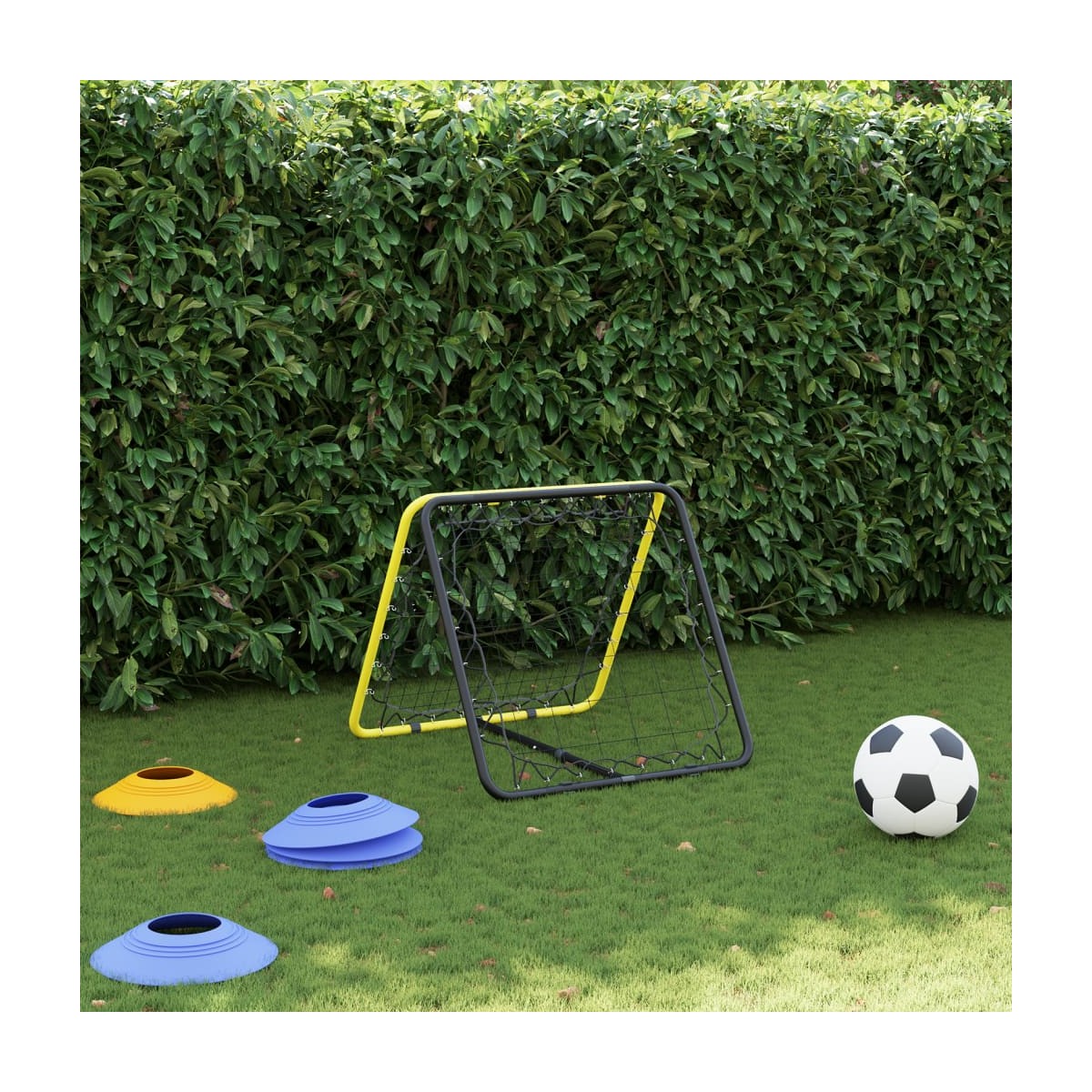 ¡Mejora tus habilidades futbolísticas con este rebotador de fútbol! Material duradero: La red de rebote está hecha de poliéster. El poliéster es un material sintético conocido por su resistencia a los rayos UV y su resistencia elástica. El poliéster es resistente al agua, por lo que resulta la elección perfecta para condiciones húmedas o lluviosas, y también se limpia fácilmente.Estructura resistente: La estructura de acero con recubrimiento en polvo aporta estabilidad y solidez a la red de rebote y garantiza una larga vida útil.Ángulo ajustable: El objetivo de rebote permite ajustar el ángulo para cumplir con los diferentes requisitos de entrenamiento. Y contiene anclajes de estabilidad que evitan que se vuelquen cuando está en uso.Diseño práctico: La red de rebote es ligera y se puede plegar, por lo que puedes llevarla a cualquier parte, por ejemplo, en el club deportivo, la escuela, el jardín y el patio trasero. Además, cuenta con diferentes tipos de redes para ambos lados, lo que lo hace perfecto para varios ejercicios de entrenamiento diferentes.Diversos usos: Es aplicable para el entrenamiento de fútbol, béisbol y baloncesto. Se puede usar para una variedad de ejercicios para mejorar la capacidad de respuesta, la coordinación mano-pie-ojo, patear, atrapar, pasar, lanzar y golpear.