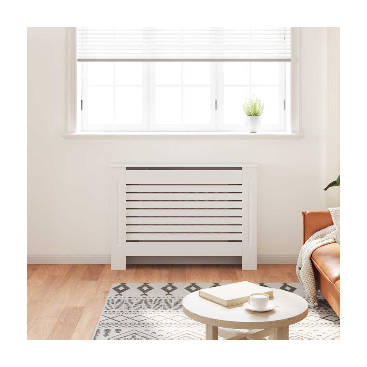Esta cubierta para el radiador será un aporte elegante y práctico para tu salón. Está diseñada para darle a tu radiador una función decorativa y disponer de un espacio adicional para poner marcos de fotos, libros, adornos, etc. Hecha de MDF de calidad, el mueble para radiador es robusto y duradero. La cubierta para el calefactor posee un diseño moderno con listones que se adapta a cualquier decoración. La cubierta de radiador es fácil de montar.
