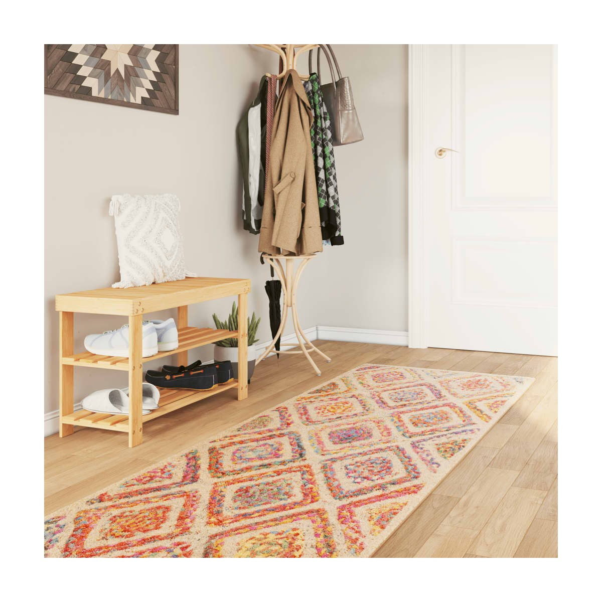 ¡Crea un ambiente cálido en casa con esta característica alfombra! Es la elección perfecta para decorar la estancia y proteger el suelo al mismo tiempo. Material suave: Esta alfombra está hecha de terciopelo, que es suave al tacto a la par que duradero y de bajo mantenimiento.Atractivo estampado: La alfombra antideslizante posee bonitos estampados, por lo que llama la atención en cualquier habitación.Reverso antideslizante: Esta alfombra suave se coloca firmemente en el suelo gracias al reverso antideslizante que te protege de los resbalones.Reducción del ruido: Esta alfombra de suelo absorbe el sonido y reduce diversos ruidos, para crear un entorno tranquilo.Fácil de cuidar: La alfombra se puede lavar a máquina para que puedas limpiarla y mantenerla con facilidad. Información útil:La alfombra está embalada para facilitar el transporte. Por favor, dale al producto algo de tiempo para que se vuelva perfectamente recta y plana.