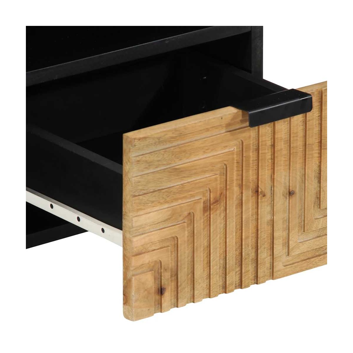 Este mueble de TV con amplio espacio de almacenamiento es un complemento práctico y llamativo para tu salón o dormitorio. Material robusto y estable: La madera maciza de mango, una madera dura tropical robusta, es muy apreciada para la fabricación de muebles por su excepcional durabilidad y resistencia. Las bonitas vetas de la madera hacen que cada mueble sea ligeramente diferente al resto.Amplio espacio de almacenamiento: este soporte de TV ofrece un amplio espacio de almacenamiento para mantener sus revistas, libros, DVD y dispositivos multimedia bien organizados y al alcance.Superficie estable y resistente: La robusta superficie es ideal para colocar el televisor y el equipo de música o algunos objetos decorativos como jarrones o macetas.Con patas: Las patas elevadas facilitan la limpieza debajo del banco de TV, manteniendo un aspecto ordenado y garantizando una mejor circulación del aire alrededor de los equipos electrónicos. Información útil:Cada artículo es único, con variaciones de color y veta. La entrega es aleatoria garantizando la exclusividad y la individualidad del producto.