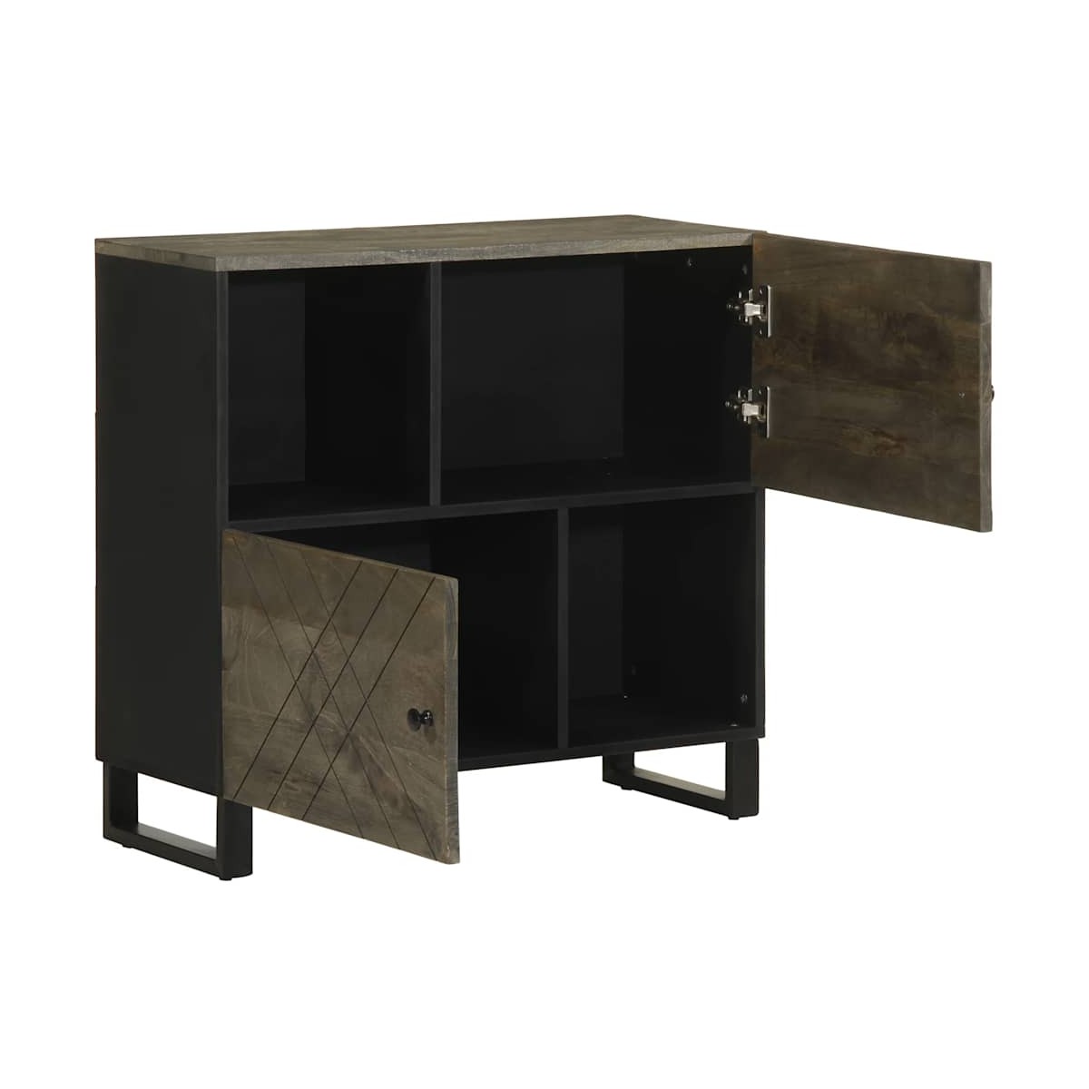 - Material: madera maciza de mango con acabado gris con efecto arenado, madera de ingeniería, metal.