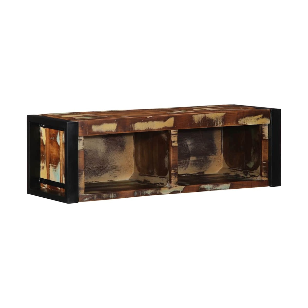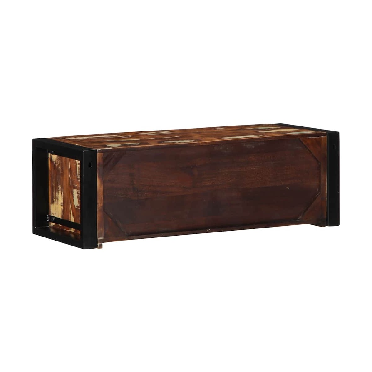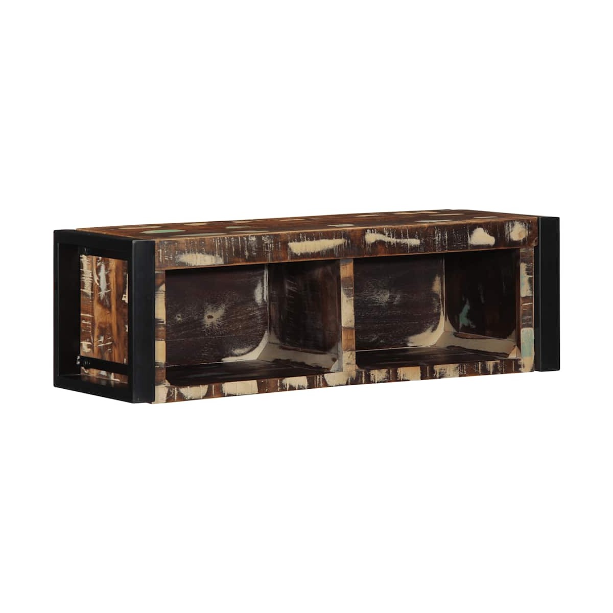 Este mueble de TV con amplio espacio de almacenamiento es un complemento práctico y llamativo para tu salón o dormitorio. Material robusto y estable: la madera maciza reciclada consta de maderas reutilizadas como la teca, la madera de mango, la madera de pino y el haya. Dichos materiales proceden de antiguas construcciones como fábricas, cobertizos y barcos. Los signos de desgaste y la estructura visible de la veta dan a cada pieza su propia historia y un aspecto único.Amplio espacio de almacenamiento: este soporte de TV ofrece un amplio espacio de almacenamiento para mantener sus revistas, libros, DVD y dispositivos multimedia bien organizados y al alcance.Ahorro de espacio: el mueble de TV se puede montar en la pared para añadir espacio de almacenamiento adicional. De esa manera, puedes maximizar el espacio del suelo y mantener el área limpia.Superficie estable y resistente: La robusta superficie es ideal para colocar el televisor y el equipo de música o algunos objetos decorativos como jarrones o macetas. Información útil:Cada artículo es único, con variaciones de color y veta. La entrega es aleatoria garantizando la exclusividad y la individualidad del producto.