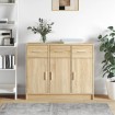 Este aparador de moda, con un aspecto atemporal, está destinado a ser un excelente complemento para la casa. Material duradero: La madera de ingeniería tiene una calidad excepcional, con una superficie lisa y también cuenta con fuerza, estabilidad y resistencia a la humedad.Amplio espacio de almacenaje: El aparador tiene 2 compartimentos y 3 cajones que ofrecen un amplio espacio de almacenaje para mantener tus cosas bien organizadas y al alcance.Función expositora: La parte superior del armario es perfecta para colocar plantas, fotos enmarcadas y otros elementos decorativos.Puerta y tiradores prácticos: Evita que tus cosas se llenen de polvo ocultándolas detrás de la puerta. Además, los tiradores de la puerta y de los cajones facilitan la apertura del mueble de almacenaje.Patas de metal: Las patas de metal le dan un estilo moderno y tranquilo a la casa mientras garantizan su estabilidad. Advertencia:Para evitar que vuelque, este producto debe usarse con el dispositivo de fijación a la pared incluido.
