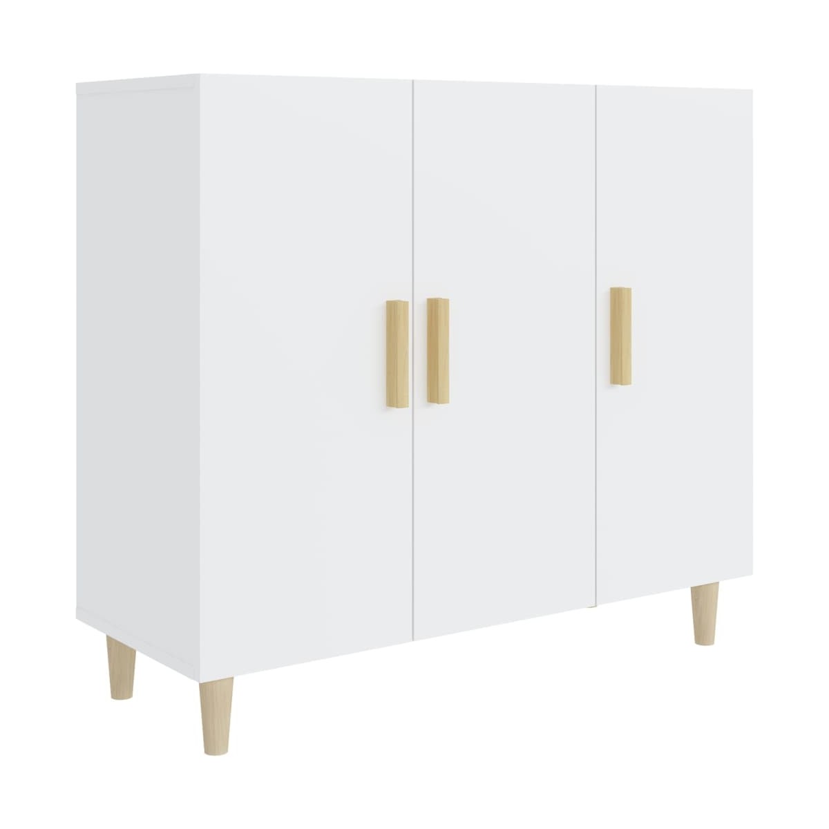 Este clásico aparador será un aporte decorativo y práctico para la decoración de tu hogar. Material de primera calidad: La madera contrachapada tiene una calidad excepcional con superficie lisa y también cuenta con fuerza, estabilidad y resistencia a la humedad.Amplio espacio de almacenamiento: El aparador tiene 3 puertas, lo que proporciona un amplio espacio de almacenamiento para mantener tus diversos artículos esenciales bien organizados y al alcance de la mano. La parte superior de este mueble es ideal para exponer objetos decorativos.Fácil de limpiar: Este armario de almacenaje es fácil de limpiar con un paño húmedo.Diseño elegante: ¡Este aparador de bufé posee un diseño elegante, que dará un aire de encanto único a la decoración de tu hogar! Advertencia:Para evitar el vuelco, este producto debe usarse con el dispositivo provisto para fijarlo a la pared.