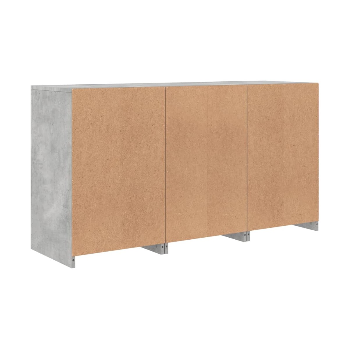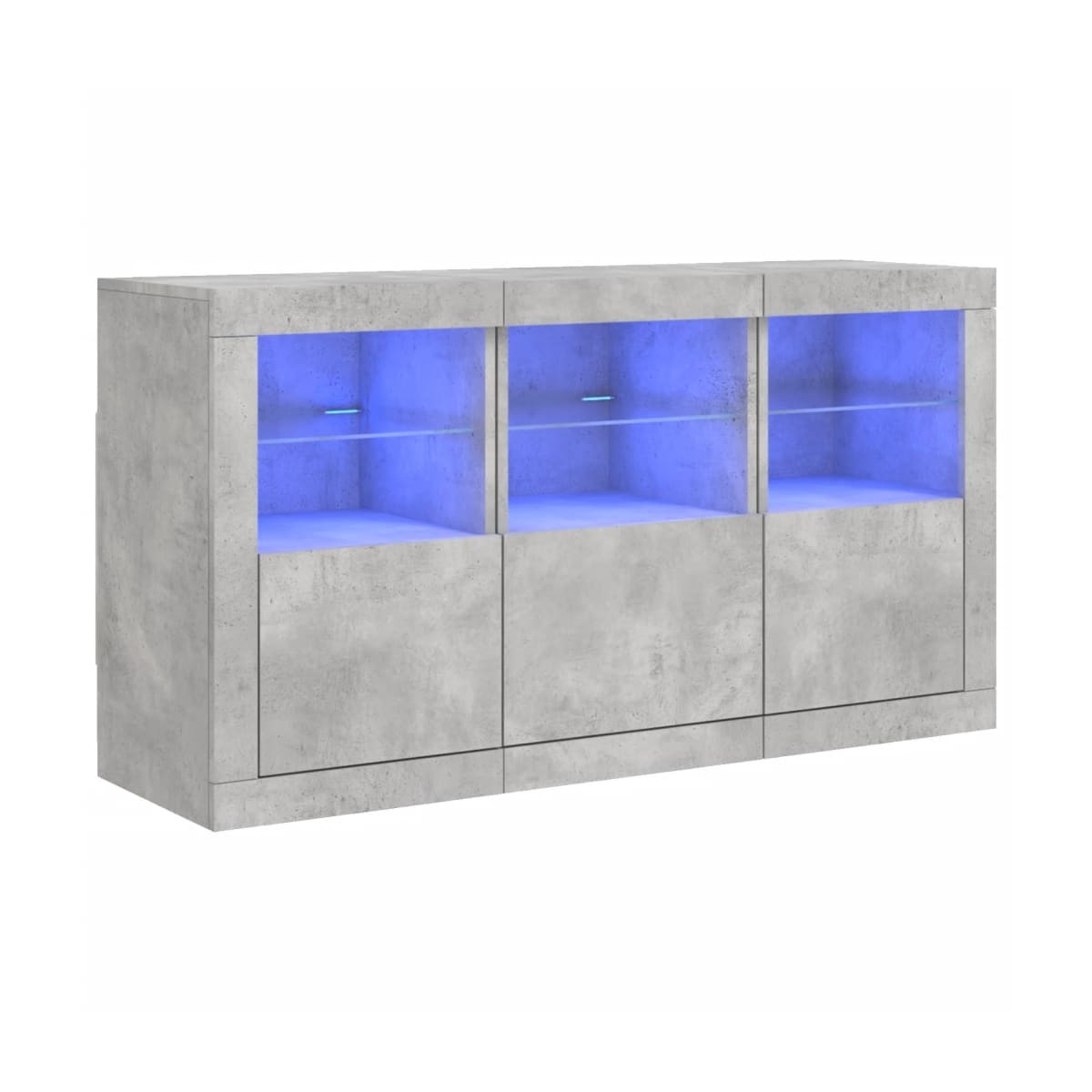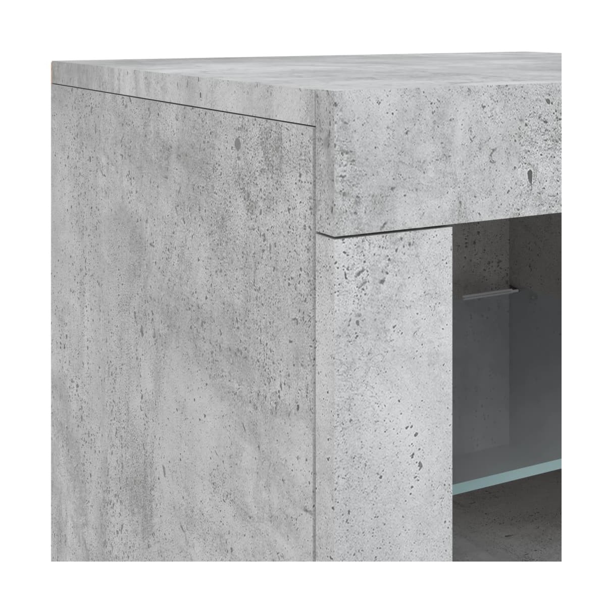 Decora el salón con este moderno aparador con luces LED, que combina fácilmente con muebles de cualquier estilo. Material duradero: La madera de ingeniería tiene una calidad excepcional, con una superficie lisa y también cuenta con fuerza, estabilidad y resistencia a la humedad.Luces LED RGB: El armario buffet está equipado con brillantes luces LED RGB. Con diversos menús personalizables, puedes cambiar el color de las luces sin problemas e incluso hacer que se ajusten automáticamente. Estas luces LED no sólo realzan el aspecto moderno del aparador, sino que también le dan un toque de moda.Amplio espacio de almacenaje: El armario de almacenaje ofrece mucho espacio para guardar a mano y en orden los artículos cotidianos.Función expositora: La resistente superficie del mueble de recibidor es ideal para exponer objetos decorativos, marcos de fotos o plantas.Puertas prácticas: Mantén tus cosas sin polvo ocultándolas tras las puertas del armario auxiliar. Información útil:El producto tiene un conector USB que necesita una fuente de alimentación USB certificada de 5 V (no incluida). Advertencia:Para evitar que vuelque, este producto debe usarse con el dispositivo de fijación a la pared incluido.