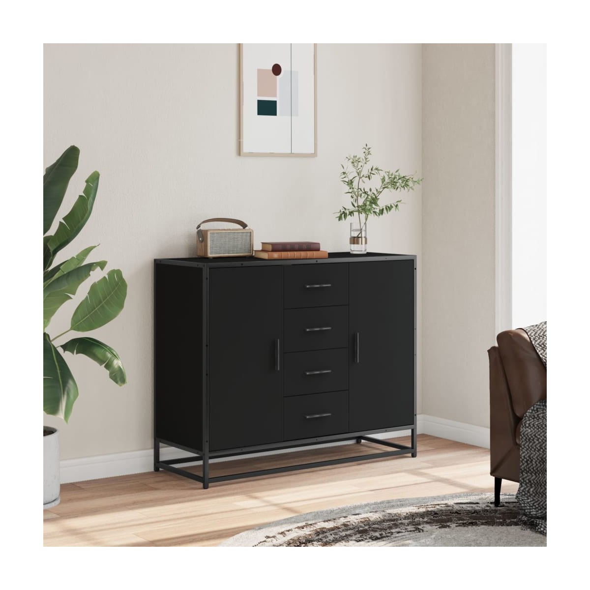 Este aparador con un diseño práctico atrapará las miradas entre la decoración de la casa. Material estable y duradero: La madera de ingeniería es un material duradero y estable con una superficie lisa que es resistente a la humedad, la deformación y la rotura, lo que la convierte en una opción fiable para una variedad de proyectos.Estructura estable y duradera: La estructura metálica del armario de almacenamiento realza tu hogar con un estilo industrial y proporciona una durabilidad, estabilidad y resistencia a la corrosión excepcionales.Amplio espacio de almacenaje: El aparador ofrece un amplio espacio de almacenaje para mantener tus cosas bien organizadas y al alcance.Diversos usos: Este aparador es versátil y adecuado para dormitorios, salas de estar, pasillos, etc. para tus necesidades.Fácil de mantener: Gracias a su superficie lisa, el armario auxiliar es fácil de limpiar con un paño húmedo y requiere menos mantenimiento. Advertencia:Para evitar que vuelque, este producto debe usarse con el dispositivo de fijación a la pared suministrado.