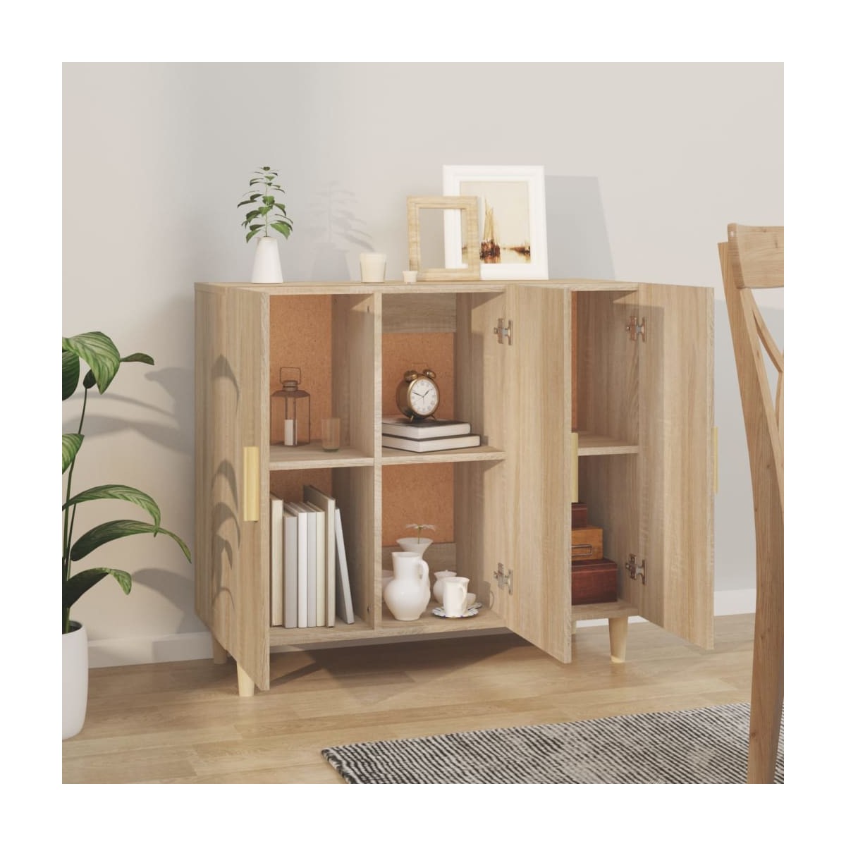 Este clásico aparador será un aporte decorativo y práctico para la decoración de tu hogar. Material de primera calidad: La madera contrachapada tiene una calidad excepcional con superficie lisa y también cuenta con fuerza, estabilidad y resistencia a la humedad.Amplio espacio de almacenamiento: El aparador tiene 3 puertas, lo que proporciona un amplio espacio de almacenamiento para mantener tus diversos artículos esenciales bien organizados y al alcance de la mano. La parte superior de este mueble es ideal para exponer objetos decorativos.Fácil de limpiar: Este armario de almacenaje es fácil de limpiar con un paño húmedo.Diseño elegante: ¡Este aparador de bufé posee un diseño elegante, que dará un aire de encanto único a la decoración de tu hogar! Advertencia:Para evitar el vuelco, este producto debe usarse con el dispositivo provisto para fijarlo a la pared.