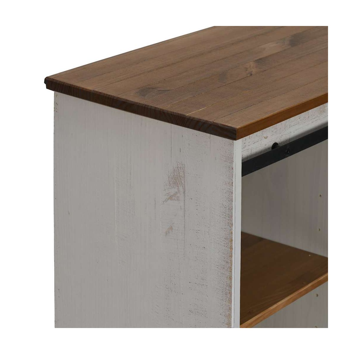 El aparador de la gama HALDEN está diseñado para aportar funcionalidad y atractivo estético a su espacio vital. Material duradero: La madera maciza de pino es un bonito material natural conocido por su durabilidad y longevidad. Su veta recta contribuye a su atractivo, mientras que los nudos le confieren ese distintivo aspecto rústico.Amplio espacio de almacenamiento: el armario cuenta con una puerta corrediza, estantes y portabotellas de vino, lo que proporciona soluciones de almacenamiento versátiles que mantienen sus artículos esenciales organizados y sin desorden. La puerta corrediza maximiza la capacidad del armario, lo que lo convierte en una opción eficiente para mantener un espacio ordenado.Amplias aplicaciones: el aparador se adapta a diversos entornos, como salas de estar, dormitorios o pasillos. Úselo como una consola decorativa o como una unidad de almacenamiento adicional para complementar sus decoraciones existentes.Puerta corrediza suave: con herrajes de metal duraderos y un mecanismo de deslizamiento suave, la puerta garantiza un acceso fácil y un funcionamiento sin esfuerzo, mientras que los herrajes se suman al atractivo estético de la unidad. Advertencia:Para evitar que vuelque, este producto debe usarse con el dispositivo de fijación a la pared suministrado.