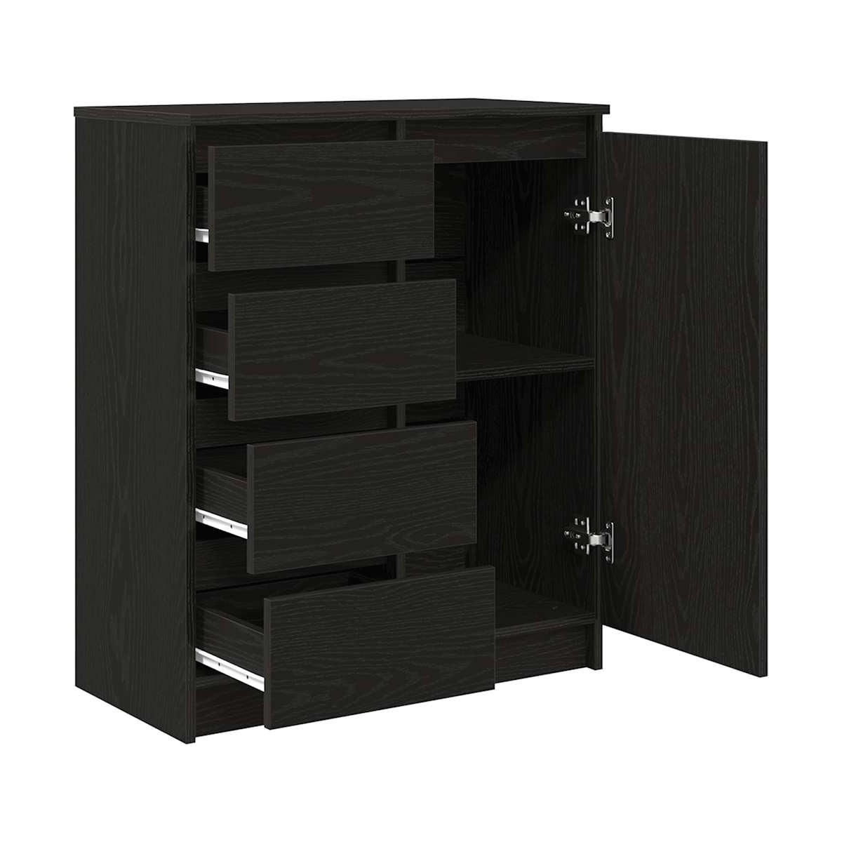 El aparador ofrece un amplio espacio de almacenamiento, lo que ayuda a mantener la habitación ordenada y organizada al tiempo que combina practicidad con estética. Material estable y duradero: La madera de ingeniería es un material duradero y estable con una superficie lisa que es resistente a la humedad, la deformación y la rotura, lo que la convierte en una opción fiable para una variedad de proyectos.Amplio espacio de almacenamiento: el aparador cuenta con cajones, un estante y una puerta, lo que garantiza que sus artículos estén bien organizados y ordenados. La puerta del armario proporciona un espacio de almacenamiento cerrado para mantener sus pertenencias protegidas y fuera de la vista, mientras que los cajones ofrecen espacio adicional para acceder fácilmente a varios artículos.Uso versátil: el aparador es perfecto para cualquier habitación, ya sea como una elegante solución de almacenamiento en la sala de estar, un complemento funcional para el comedor o un práctico organizador en la oficina en casa. Su diseño adaptable complementa varios estilos, lo que lo convierte en una excelente opción para guardar libros, ropa de cama o material de oficina y, al mismo tiempo, mejorar el espacio.Instalación personalizable: El aparador se puede montar en dos configuraciones, lo que permite colocar la puerta en el lado derecho o izquierdo, con los cajones en consecuencia.Fácil de mantener: Gracias a su superficie lisa, el aparador es fácil de limpiar con un paño húmedo y requiere menos mantenimiento. Advertencia:Para evitar que vuelque, este producto debe usarse con el dispositivo de fijación a la pared suministrado.