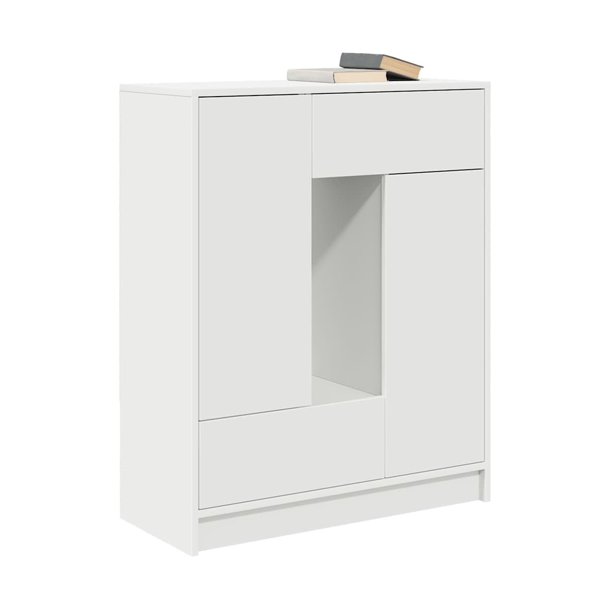 El aparador ofrece soluciones de almacenamiento versátiles, manteniendo su espacio ordenado y organizado mientras agrega practicidad y estética a su espacio vital. Material estable y duradero: La madera de ingeniería es un material duradero y estable con una superficie lisa que es resistente a la humedad, la deformación y la rotura, lo que la convierte en una opción fiable para una variedad de proyectos.Amplio espacio de almacenamiento: el aparador cuenta con puertas y cajones, lo que garantiza que sus artículos estén bien organizados y ordenados. Las puertas del aparador ofrecen un espacio de almacenamiento cerrado para proteger sus pertenencias y mantenerlas fuera de la vista, mientras que los cajones brindan espacio adicional para acceder fácilmente a varios artículos.Superficie resistente: la superficie resistente de la mesa proporciona una superficie confiable para mantener sus elementos esenciales a mano, lo que la hace ideal para el uso diario. Ya sea que esté exhibiendo marcos de fotos, elementos decorativos o platos para servir, su durabilidad garantiza que pueda realizar varias tareas con facilidad.Uso versátil: el armario de pasillo con un diseño elegante es perfecto para cualquier habitación, ya que sirve como una elegante solución de almacenamiento en la sala de estar, un complemento funcional para el comedor o un práctico organizador para la entrada. Su diseño adaptable complementa varios estilos, lo que lo convierte en una excelente opción para realzar y ordenar su espacio.Fácil de mantener: Gracias a su superficie lisa, el aparador es fácil de limpiar con un paño húmedo y requiere menos mantenimiento. Advertencia:Para evitar que vuelque, este producto debe usarse con el dispositivo de fijación a la pared suministrado.