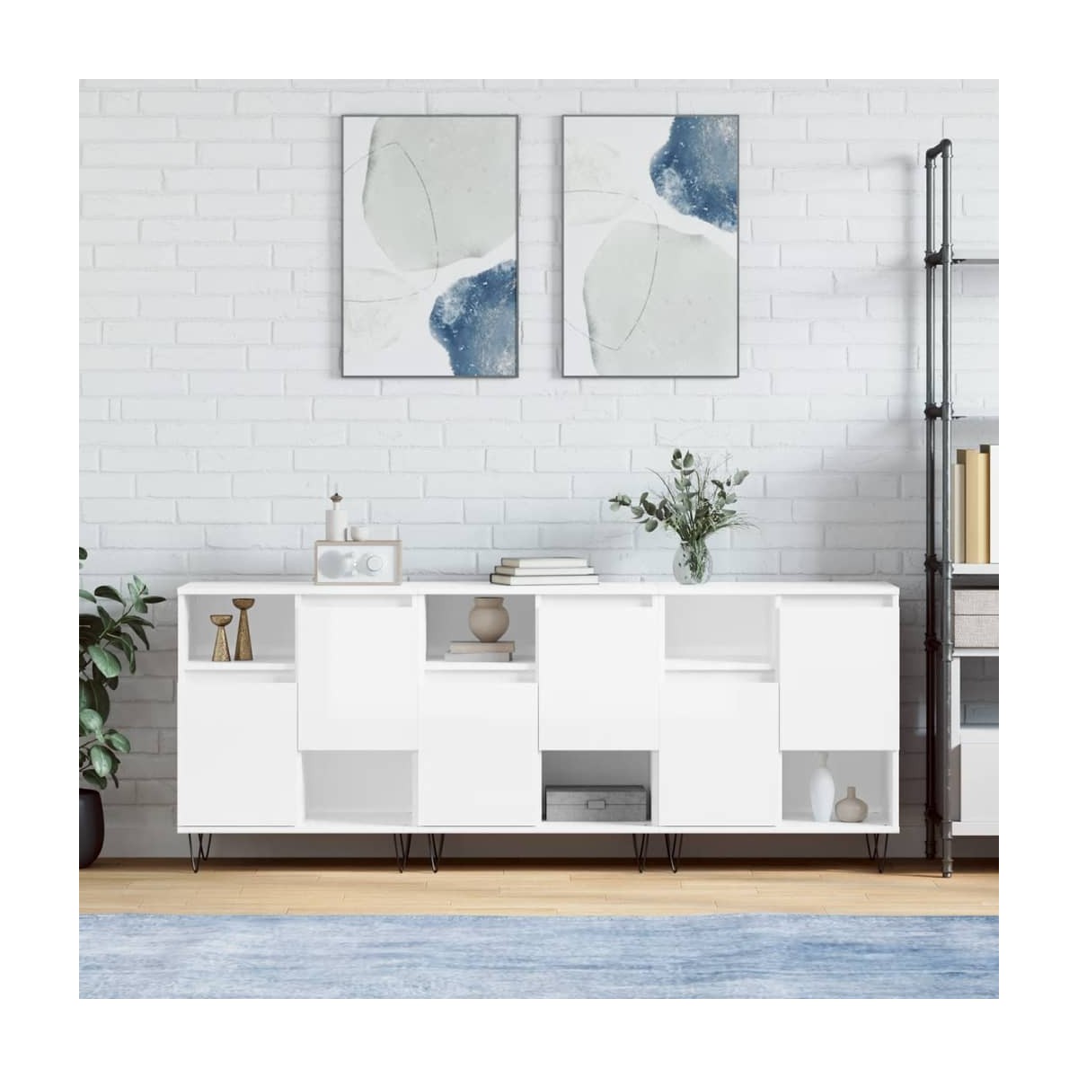 Estos aparadores clásicos, con un aspecto atemporal, están destinados a ser un excelente aporte para la casa. Material duradero: La madera contrachapada tiene una calidad excepcional, con una superficie lisa y también cuenta con fuerza, estabilidad y resistencia a la humedad.Amplio espacio de almacenaje: El armario ofrece un amplio espacio de almacenamiento para mantener tus diversos artículos de uso diario bien organizados y al alcance.Función expositora: También puedes colocar tus fotos favoritas, adornos o flores en la superficie de este mueble de almacenaje para alegrarte la vida. Advertencia:Para evitar que vuelque, este producto debe usarse con el dispositivo de fijación a la pared incluido.