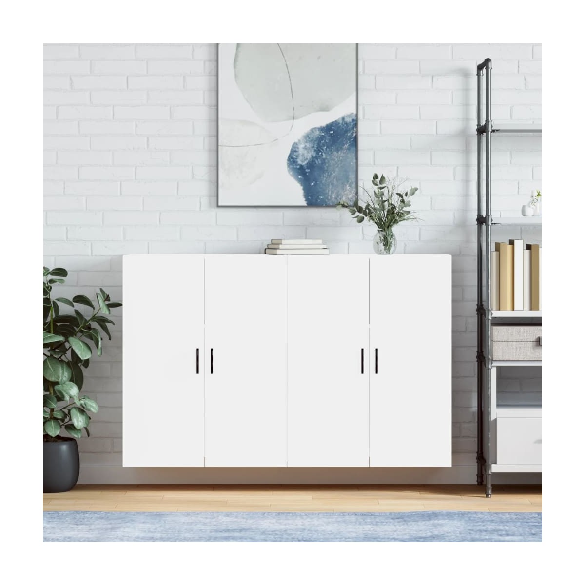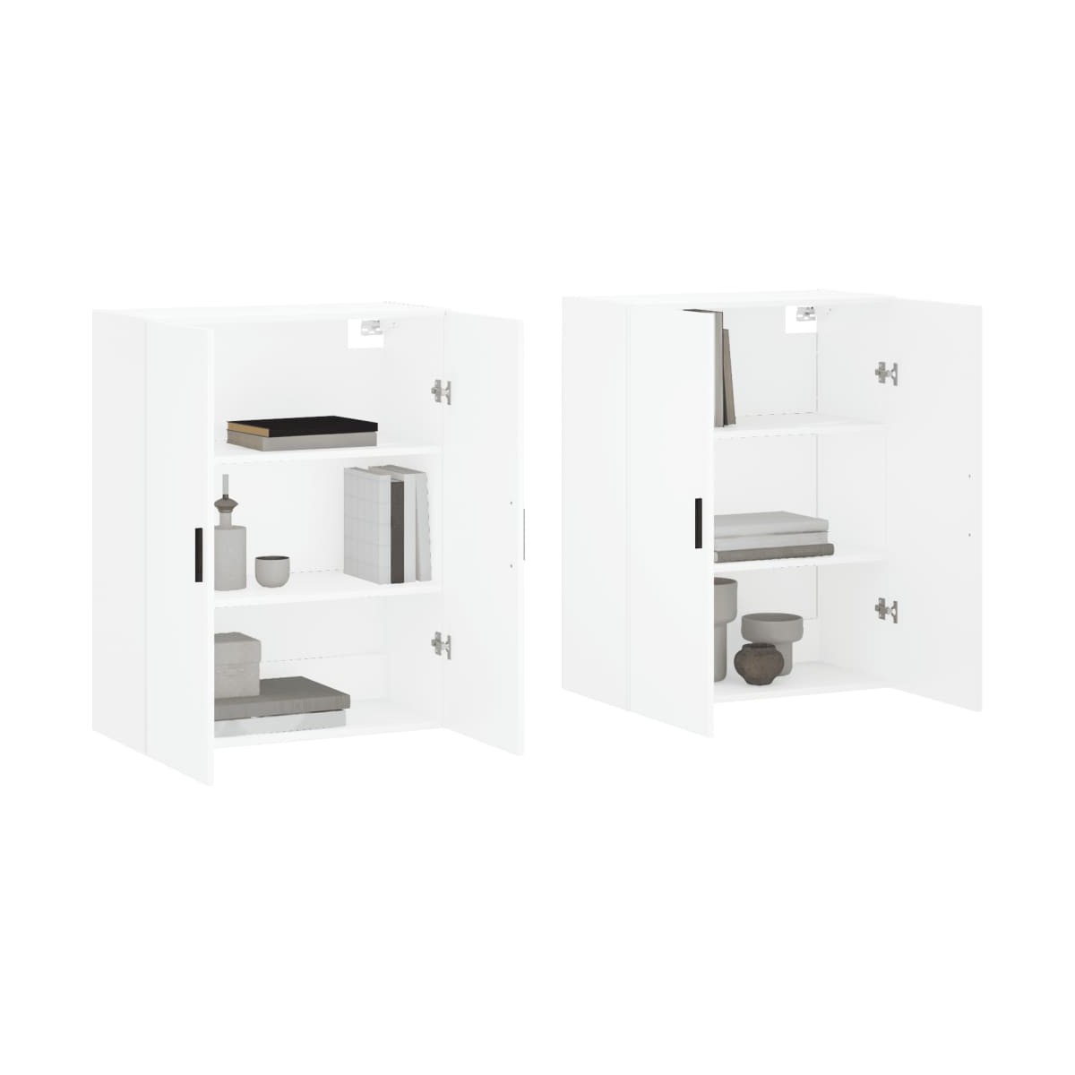 Estos armarios de pared con un diseño elegante son un complemento atemporal para la decoración de tu hogar. Material duradero: La madera de ingeniería tiene una calidad excepcional, una superficie lisa y también cuenta con fuerza, estabilidad y resistencia a la humedad. Hecho de madera de ingeniería, este armario es robusto y duradero.Amplio espacio de almacenamiento: La vitrina montada en la pared ofrece un amplio espacio de almacenamiento para mantener sus diversos elementos esenciales diarios bien organizados y al alcance de la mano.Función de montaje en pared: El armario de almacenamiento con puertas no ocupa espacio en el suelo.Puedes colgarlo de la pared fácilmente.Diseño práctico: Evita que tus cosas se llenen de polvo ocultándolas tras las puertas. Además, los tiradores facilitan la apertura del armario de pared.Diversos usos: El diseño sencillo hace que el armario de pared sea adecuado para tu salón, dormitorio, estudio y cualquier otro espacio. Información útil:Los tornillos y los tacos para el interior de la pared no están incluidos. Recomendamos encontrar y utilizar tornillos y tacos adecuados específicamente para las paredes. Si no estás seguro, puedes consultar con un profesional. Lee y sigue cada paso de las instrucciones.