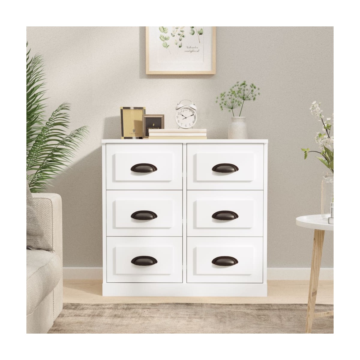 Este aparador clásico, con un aspecto atemporal, está pensado para ser un excelente aporte a tu hogar. Material duradero: La madera contrachapada tiene una calidad excepcional, con una superficie lisa y también cuenta con fuerza, estabilidad y resistencia a la humedad.Amplio espacio de almacenaje: El armario ofrece un amplio espacio de almacenamiento para mantener tus diversos artículos de uso diario bien organizados y al alcance. Función expositora: También puedes colocar tus fotos favoritas, adornos o flores en la superficie de este mueble de almacenaje para alegrarte la vida. Información útil:Para facilitar al máximo el montaje, cada producto se entrega con un manual. Advertencia:Para evitar que vuelque, este producto debe usarse con el dispositivo de fijación a la pared incluido.