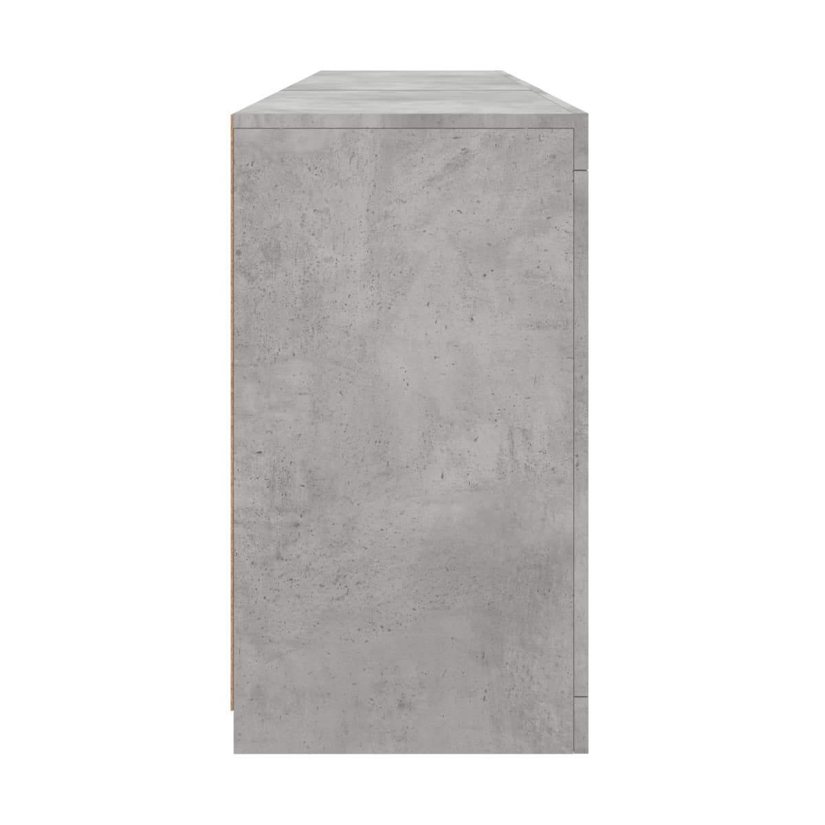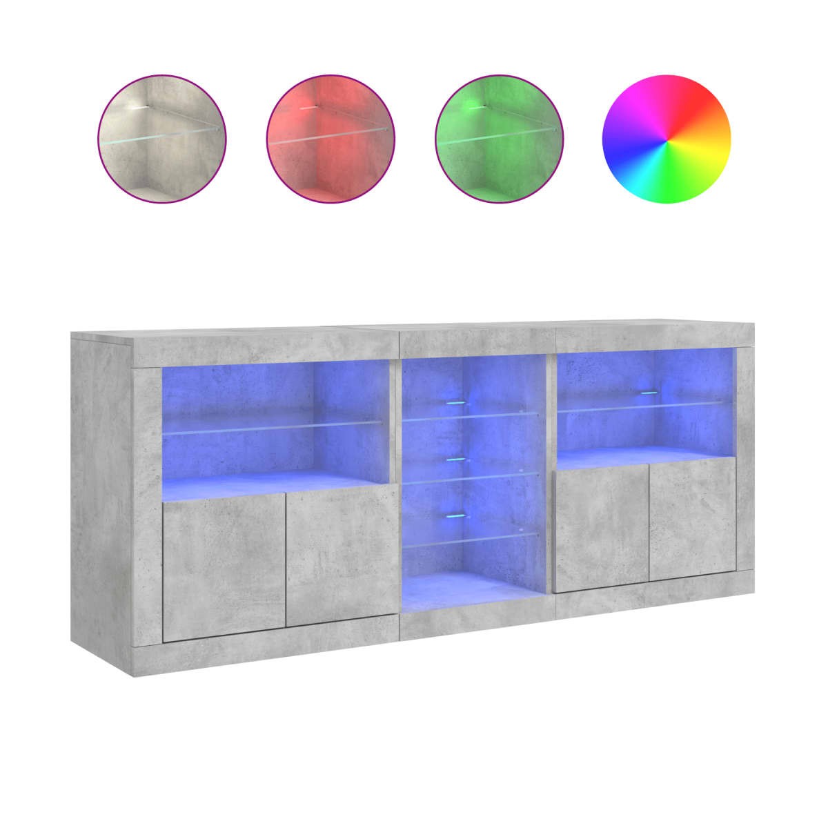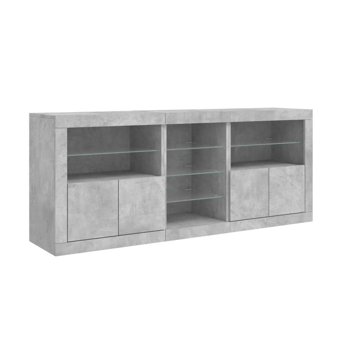 Decora el salón con este moderno aparador con luces LED, que combina fácilmente con muebles de cualquier estilo. Material duradero: La madera de ingeniería tiene una calidad excepcional, con una superficie lisa y también cuenta con fuerza, estabilidad y resistencia a la humedad.Luces LED RGB: El armario buffet está equipado con brillantes luces LED RGB. Con diversos menús personalizables, puedes cambiar el color de las luces sin problemas e incluso hacer que se ajusten automáticamente. Estas luces LED no sólo realzan el aspecto moderno del aparador, sino que también le dan un toque de moda.Amplio espacio de almacenaje: El armario de almacenaje ofrece mucho espacio para guardar a mano y en orden los artículos cotidianos.Función expositora: La resistente superficie del mueble de recibidor es ideal para exponer objetos decorativos, marcos de fotos o plantas.Puertas prácticas: Mantén tus cosas sin polvo ocultándolas tras las puertas del armario auxiliar. Información útil:El producto tiene un conector USB que necesita una fuente de alimentación USB certificada de 5 V (no incluida). Advertencia:Para evitar que vuelque, este producto debe usarse con el dispositivo de fijación a la pared incluido.