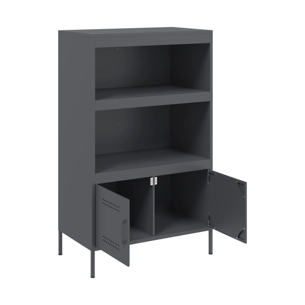 Este robusto aparador alto de estilo industrial es un complemento atemporal para tu salón o dormitorio. Estructura robusta y estable: El acero es fuerte, estable y duradero, lo que lo convierte en la opción ideal para una amplia gama de aplicaciones, desde la fabricación de muebles hasta la construcción.Amplio espacio de almacenamiento: Este aparador alto tiene 2 estantes y 2 compartimentos, lo que proporciona un amplio espacio de almacenamiento para mantener tus diversos elementos esenciales diarios bien organizados y al alcance de la mano. Fácil de limpiar: El armario es fácil de limpiar con un paño húmedo y requiere menos mantenimiento.Puerta práctica: Mantén tu espacio ordenado escondiendo tus elementos esenciales detrás de las puertas del armario de almacenamiento.Advertencia:Para evitar que vuelque, este producto debe usarse con el dispositivo de fijación a la pared suministrado.