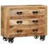 Este aparador de madera tiene un diseño característico y dará un toque de estilo retro a la casa. Madera maciza de mango: La madera maciza de mango es una madera dura, tropical y resistente, que sirve para hacer muebles robustos. Las bonitas vetas de la madera hacen que cada mueble sea ligeramente diferente al resto.Ruedas de hierro fundido: Las robustas ruedas de hierro fundido facilitan el desplazamiento del armario lateral. Gracias al mecanismo de frenado, podrás inmovilizar fácilmente el armario cuando está en uso.Diseño práctico: El mueble aparador tiene 3 cajones que ofrecen un amplio espacio de almacenaje para mantener organizados ropas, libros, cristalería, etc. Además, la robusta superficie es ideal para exponer objetos decorativos, como jarrones, álbumes de fotos, fruteros, etc. Información útil:Los colores y las vetas varían en cada artículo, por lo que cada pieza es única. La entrega es aleatoria, asegurando la exclusividad e individualidad del producto.