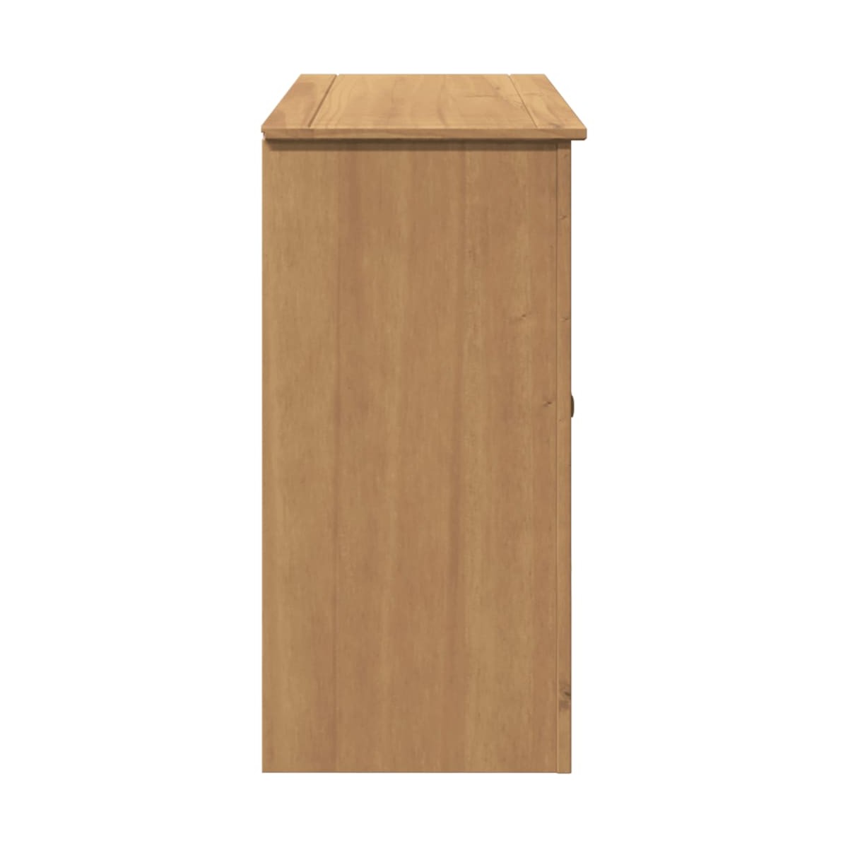 Si te falta espacio pero necesitas más almacenaje, ¡este compacto y elegante aparador ha llegado para ayudar! Madera maciza de pino: La madera maciza de pino es un bonito material natural. La madera de pino tiene vetas rectas, y los nudos dan al material su distintivo aspecto rústico. Hecho de madera maciza de pino, el armario es duradero y resistente.Almacenamiento espacioso y funcional: Con 3 cajones y 2 compartimentos, el armario aparador ofrece un amplio espacio para mantener tus cosas organizadas. Además, tiene múltiples usos. El aparador también se puede utilizar como buffet, aparador de cocina o como mueble auxiliar para salón o pasillo.Fácil de mantener: El armario de madera se limpia fácilmente con un paño húmedo y requiere menos mantenimiento.Prácticos pomos: El mueble aparador viene con pomos que facilitan la apertura y el cierre a la vez que añaden un extra de belleza. Advertencia:Para evitar que vuelque, este producto debe usarse con el dispositivo de fijación a la pared suministrado.