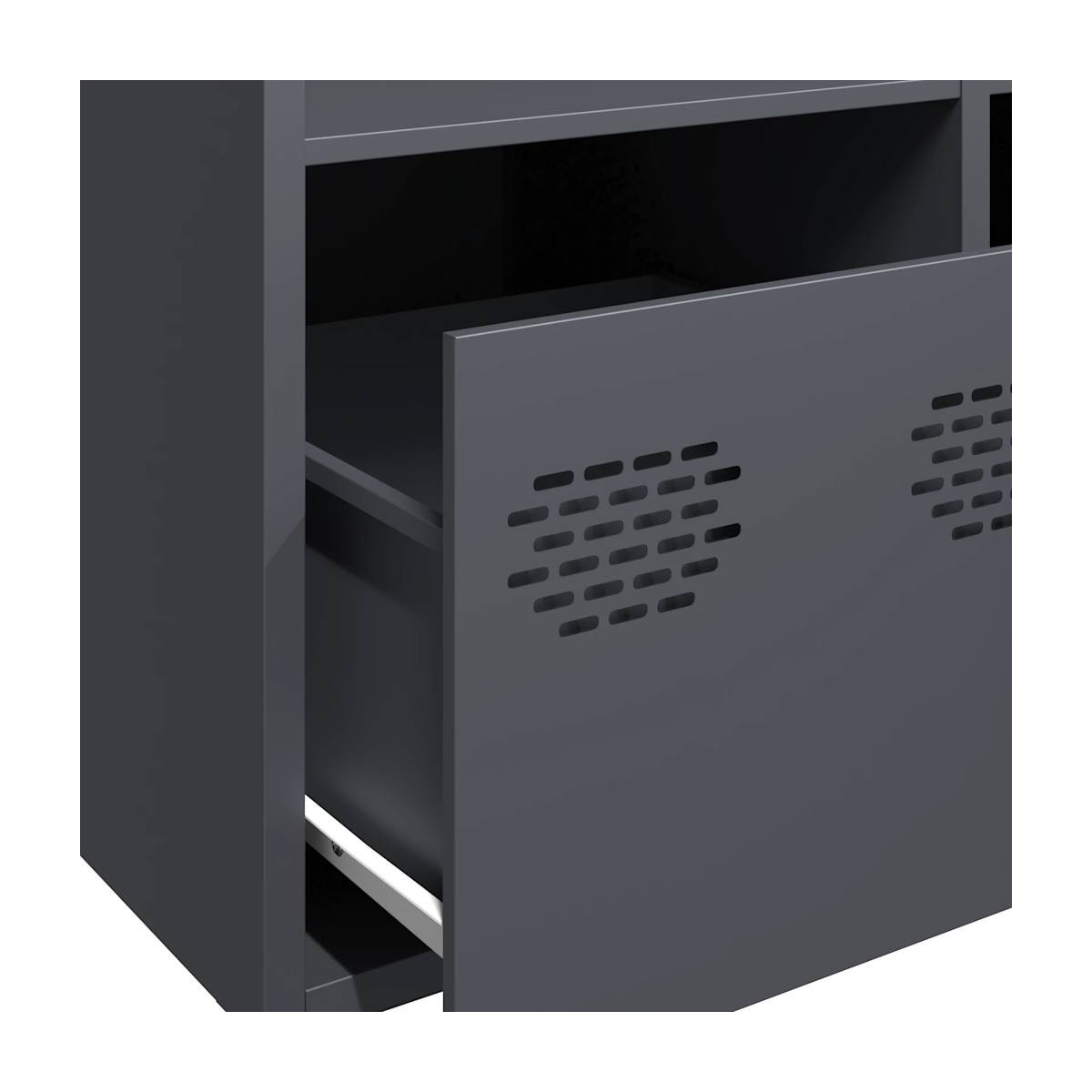 Este aparador clásico está destinado a ser un aporte decorativo y práctico a tu hogar y oficina. Estructura robusta y estable: El acero laminado en frío tiene una superficie más lisa, mayor resistencia y mayor precisión. Los pies metálicos añaden un estilo tranquilo a tu hogar a la vez que garantizan la estabilidad.Amplio espacio de almacenaje: El armario con cajón ofrece un amplio espacio de almacenamiento para mantener tus diversos artículos de uso diario bien organizados y al alcance.Fácil de mantener: Gracias a su superficie lisa, el armario es fácil de limpiar con un paño húmedo y requiere menos mantenimiento.Diversos usos: Este aparador se puede utilizar como armario para libros o estante de exhibición en su sala de estar, dormitorio u oficina, según tus necesidades. Advertencia:Para evitar que vuelque, este producto debe usarse con el dispositivo de fijación a la pared suministrado.