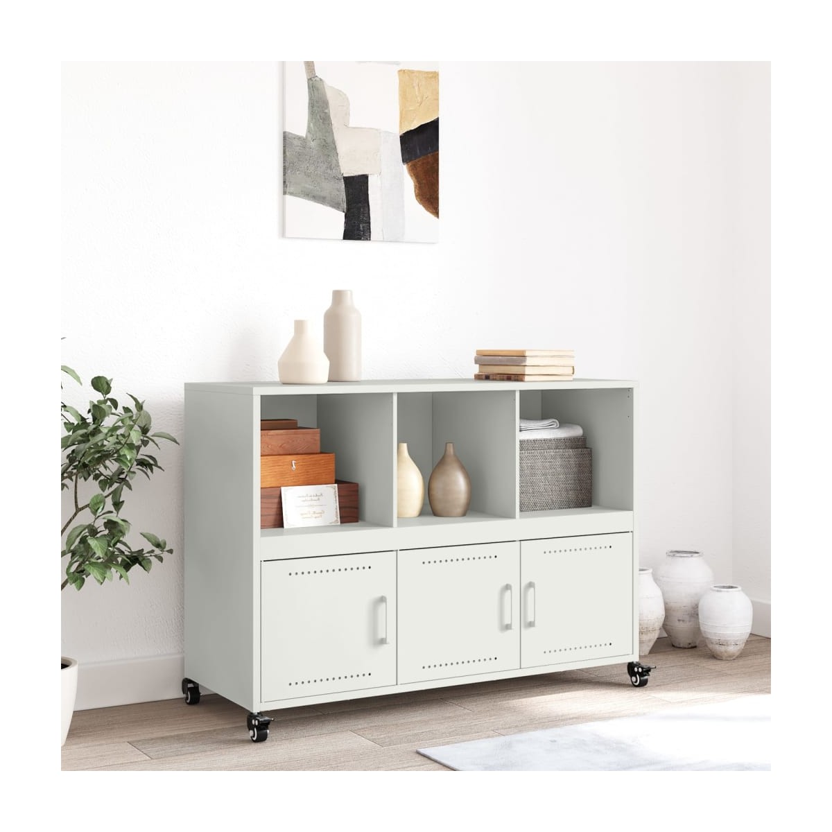 ¿Buscas un aparador elegante? ¡Este armario bien diseñado dará un toque elegante a la decoración de la casa! Material duradero: El acero es un material muy duro y fuerte. Ofrece robustez y estabilidad. Las placas de acero laminadas en frío tienen una buena calidad superficial y una alta precisión dimensional.Amplio espacio de almacenamiento: Este aparador ofrece un práctico espacio de almacenamiento para mantener tus revistas, libros, mandos a distancia y otros objetos pequeños bien organizados y al alcance de la mano.Fácil de mantener: El armario se limpia fácilmente con un paño húmedo y requiere menos mantenimiento.Fácil de mover: Este aparador tiene 4 ruedas, lo que hace que se mueva con flexibilidad y se estacione de manera estable en cualquier momento.