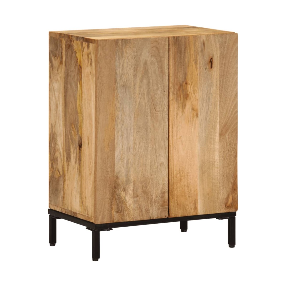 El aparador es de madera de mango maciza rugosa y hierro negro con recubrimiento en polvo combinado con acero, con 2 cajones y 2 puertas. Robusto y estable: La madera maciza de mango es una madera dura tropical fuerte que fabrica muebles resistentes. Las bonitas vetas de madera hacen que cada mueble sea ligeramente diferente del resto.Amplio espacio de almacenamiento: El aparador con puertas ofrece un amplio espacio de almacenamiento para mantener diversos artículos esenciales diarios bien organizados y al alcance de la mano.Superficie robusta: El armario de almacenaje tiene una superficie resistente, en la que puedes colocar tus objetos decorativos, álbumes de fotos o plantas pequeñas.Diversos usos: Este aparador es versátil y adecuado para dormitorios, salas de estar, pasillos, etc. para sus necesidades. Advertencia:Para evitar que vuelque, este producto debe usarse con el dispositivo de fijación a la pared suministrado.Información útil:Cada artículo es único, con variaciones de color y veta. La entrega es aleatoria garantizando la exclusividad y la individualidad del producto.