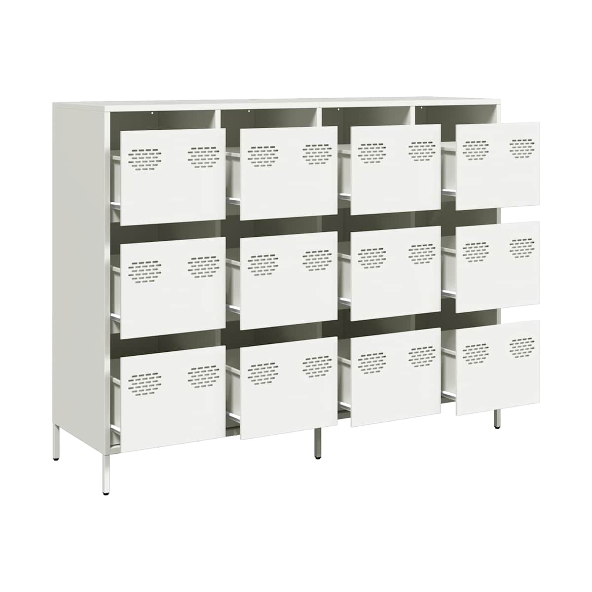 Este aparador con un diseño práctico atrapará las miradas entre la decoración de la casa. Robusto y estable: El acero laminado en frío es un tipo de acero con bajo contenido de carbono que se produce mediante el proceso de laminado en frío y se procesa a temperaturas ambiente casi normales. El acero laminado en frío tiene una superficie más lisa, mayor resistencia y mayor precisión.Amplio espacio de almacenaje: El armario con cajones ofrece un amplio espacio de almacenamiento para mantener tus diversos artículos de uso diario bien organizados y al alcance.Superficie robusta: El aparador tiene una superficie resistente, en la que puedes colocar tus objetos decorativos, álbumes de fotos o plantas pequeñas.Fácil de mantener: Gracias a su superficie lisa, el aparador metálico es fácil de limpiar con un paño húmedo y requiere menos mantenimiento. Advertencia:Para evitar que vuelque, este producto debe usarse con el dispositivo de fijación a la pared suministrado.