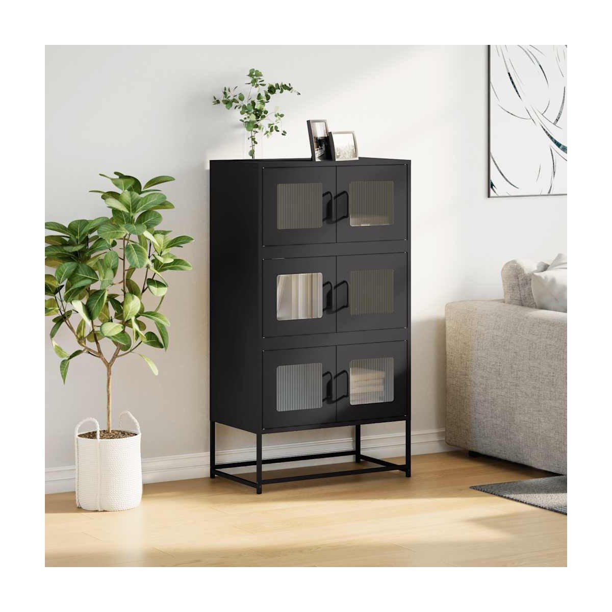 Este aparador ofrece tanto un atractivo decorativo como un almacenamiento práctico, lo que lo convierte en un complemento perfecto para tu hogar. Material robusto y estable: El acero laminado en frío es un tipo de acero con bajo contenido de carbono que se produce mediante el proceso de laminado en frío y se procesa a temperaturas ambiente casi normales. El acero laminado en frío tiene una superficie más lisa, mayor resistencia y mayor precisión.Amplio espacio de almacenamiento: El armario ofrece un amplio espacio de almacenamiento para los artículos de comedor y otros artículos del hogar para mantenerlos organizados y al alcance de la mano.Práctica puerta: La puerta del armario proporciona un espacio de almacenamiento cerrado para mantener tus pertenencias organizadas, protegidas y fuera de la vista.Opciones de montaje flexibles: Las puertas del compartimiento se pueden instalar a la izquierda o a la derecha según tu conveniencia y hábitos personales.Manijas prácticas: El aparador viene con manijas que proporcionan un agarre cómodo, ayudándote a abrir y cerrar el gabinete fácilmente y al mismo tiempo agregando belleza adicional. Advertencia:Para evitar que vuelque, este producto debe usarse con el dispositivo de fijación a la pared suministrado.