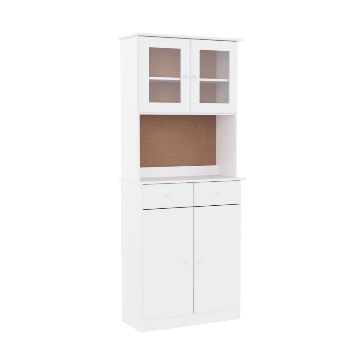 Este aparador alto de madera, con amplio espacio de almacenaje, es un complemento ideal para el salón. Madera maciza de pino: La madera maciza de pino es un hermoso material natural. La madera de pino tiene vetas rectas, y los nudos dan al material su característico aspecto rústico. Hecho de madera maciza de pino, el armario es duradero y resistente.Amplio espacio de almacenamiento: Con estantes, cajones y puertas de cristal, el armario alto te ofrece muchas opciones para guardar y exponer tus artículos favoritos.Fácil de mantener: El armario de almacenaje se limpia fácilmente con un paño húmedo y requiere poco mantenimiento.Pomos de madera: El aparador alto viene con pomos de madera que facilitan la apertura y el cierre del mueble y añaden un plus estético. Advertencia:Para evitar que vuelque, este producto debe usarse con el dispositivo de fijación a la pared incluido.