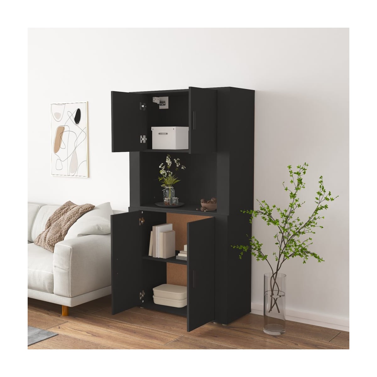 ¿En busca de un aparador elegante? ¡Este armario alto da un toque único a la decoración de la casa! Material duradero: La madera contrachapada tiene una calidad excepcional, con una superficie lisa y también cuenta con fuerza, estabilidad y resistencia a la humedad.Amplio espacio de almacenaje: El aparador ofrece un amplio espacio de almacenaje para mantener tus artículos de uso diario bien organizados y al alcance.Para la pared: El mueble de almacenamiento se puede montar en la pared, en la parte superior del aparador para crear un armario alto, para ahorrar espacio en el suelo. De este modo, podrás aprovechar al máximo el espacio y mantener la zona despejada y ordenada. Información útil:Para facilitar al máximo el montaje, cada producto se entrega con un manual.Los tornillos y los tacos para el interior de la pared no están incluidos. Recomendamos encontrar y utilizar tornillos y tacos adecuados específicamente para las paredes. Si no estás seguro, puedes consultar con un profesional. Lee y sigue cada paso de las instrucciones. Advertencia:Para evitar que vuelque, este producto debe usarse con el dispositivo de fijación a la pared incluido.