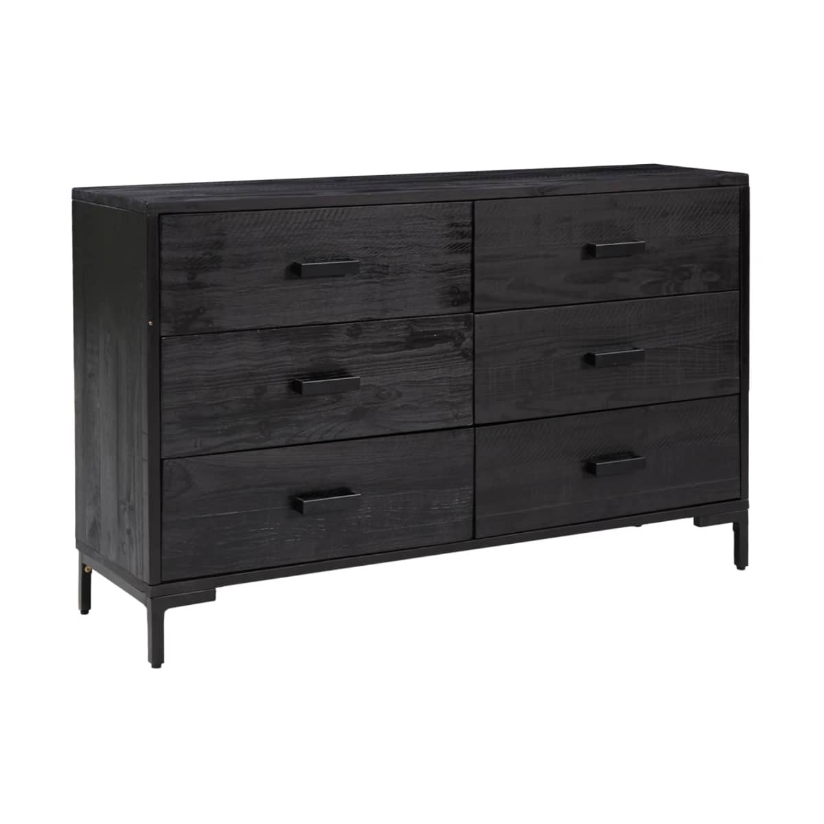 Este imprescindible aparador de madera aporta un toque vintage al salón y, además, es muy práctico. Madera maciza de pino reciclada: El mueble está hecho con madera maciza de pino reciclada, que tiene algunos bordes rugosos, defectos y arañazos, lo que le otorga un aspecto industrial y vintage.Amplio espacio de almacenamiento: Con 6 cajones, este mueble ofrece un amplio espacio de almacenamiento para mantener tus básicos diarios bien organizados y a tu alcance.Superficie resistente: La robusta superficie del mueble de almacenaje es ideal para colocar objetos decorativos, marcos de fotos o plantas.Patas de metal: Las patas de metal de este aparador garantizan su resistencia y estabilidad. Advertencia:Para evitar el vuelco, este producto debe usarse con el dispositivo provisto para fijarlo a la pared. Nota:Cada producto viene con un manual de montaje en la caja para facilitar el montaje.