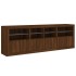 Decora el salón con este moderno aparador con luces LED, que combina fácilmente con muebles de cualquier estilo. Material duradero: La madera de ingeniería tiene una calidad excepcional, con una superficie lisa y también cuenta con fuerza, estabilidad y resistencia a la humedad.Luces LED RGB: El armario buffet está equipado con brillantes luces LED RGB. Con diversos menús personalizables, puedes cambiar el color de las luces sin problemas e incluso hacer que se ajusten automáticamente. Estas luces LED no sólo realzan el aspecto moderno del aparador, sino que también le dan un toque de moda.Amplio espacio de almacenaje: El armario de almacenaje ofrece mucho espacio para guardar a mano y en orden los artículos cotidianos.Función expositora: La resistente superficie del mueble de recibidor es ideal para exponer objetos decorativos, marcos de fotos o plantas.Puertas prácticas: Mantén tus cosas sin polvo ocultándolas tras las puertas del armario auxiliar. Información útil:El producto tiene un conector USB que necesita una fuente de alimentación USB certificada de 5 V (no incluida). Advertencia:Para evitar que vuelque, este producto debe usarse con el dispositivo de fijación a la pared incluido.