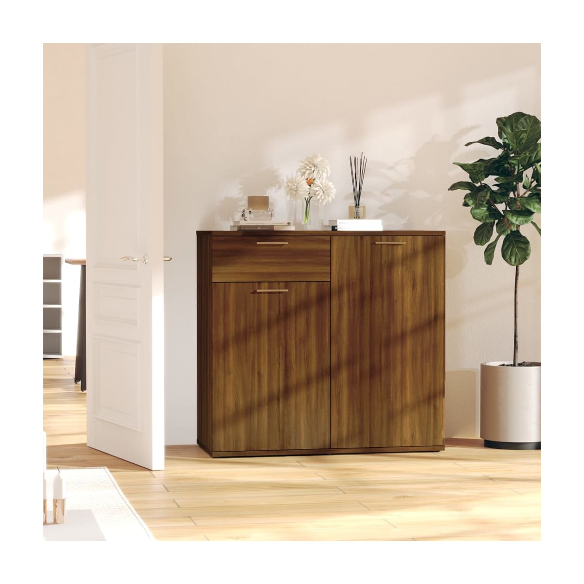 Con un encanto minimalista, este aparador satisfará tus necesidades y será un complemento ideal en tu habitación. Material fácil de limpiar: Hecha de madera contrachapada, el mueble es fácil de limpiar. La madera contrachapada tiene una calidad excepcional, con una superficie lisa y también con fuerza, estabilidad y resistencia a la humedad.Diseño flexible: Puedes montar la puerta y el cajón en el lado izquierdo o derecho, a tu gusto.Amplio espacio de almacenamiento: El espacio de almacenamiento facilita mantener las cosas organizadas.Aparador multiusos: La robusta superficie es ideal para exhibir objetos decorativos, marcos de fotos o plantas en macetas. También puede usarse como armario consola, armario auxiliar, etc. Advertencia:Para evitar el vuelco, este producto debe usarse con el dispositivo provisto para fijarlo a la pared.