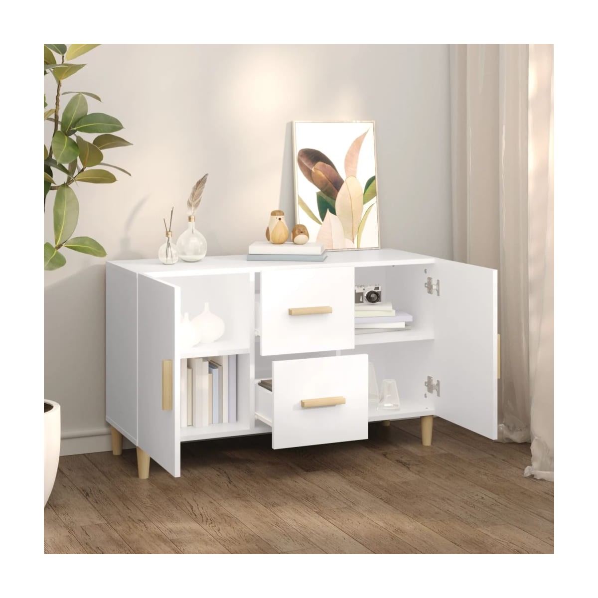 Este clásico aparador será un aporte decorativo y práctico para la decoración de tu hogar. Material de primera calidad: La madera contrachapada tiene una calidad excepcional con superficie lisa y también cuenta con fuerza, estabilidad y resistencia a la humedad.Amplio espacio de almacenamiento: El aparador tiene 2 puertas y 2 cajones, lo que proporciona un amplio espacio de almacenamiento para mantener tus diversos artículos esenciales bien organizados y al alcance de la mano. La parte superior de este mueble es ideal para exponer objetos decorativos.Fácil de limpiar: Este armario de almacenaje es fácil de limpiar con un paño húmedo.Diseño elegante: ¡Este aparador de bufé posee un diseño elegante, que dará un aire de encanto único a la decoración de tu hogar! Advertencia:Para evitar el vuelco, este producto debe usarse con el dispositivo provisto para fijarlo a la pared.