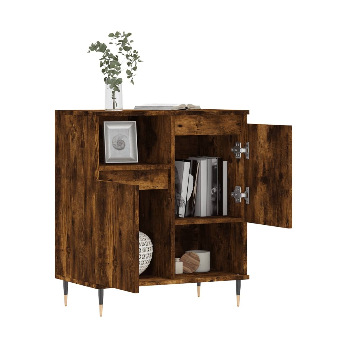 Este aparador de moda, con un aspecto atemporal, está destinado a ser un excelente complemento para la casa. Material duradero: La madera de ingeniería tiene una calidad excepcional, con una superficie lisa y también cuenta con fuerza, estabilidad y resistencia a la humedad. Hecho de madera de ingeniería, el armario de almacenaje es fácil de limpiar con un paño húmedo.Amplio espacio de almacenaje: El aparador ofrece un amplio espacio de almacenaje para mantener tus cosas bien organizadas y al alcance.Función expositora: La superficie del aparador es perfecta para exponer los objetos decorativos, marcos de fotos y plantas.Patas de hierro: Las patas de hierro del armario auxiliar garantizan su solidez y estabilidad. Advertencia:Para evitar que vuelque, este producto debe usarse con el dispositivo de fijación a la pared incluido.