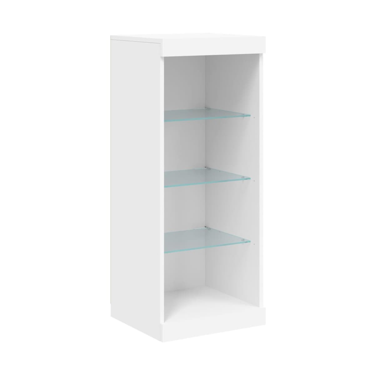 Decora el salón con este moderno aparador con luces LED, que combina fácilmente con muebles de cualquier estilo. Material duradero: La madera de ingeniería tiene una calidad excepcional, con una superficie lisa y también cuenta con fuerza, estabilidad y resistencia a la humedad.Amplio espacio de almacenaje: Este aparador ofrece un amplio espacio de almacenaje para mantener bien organizados y a mano revistas, libros, mandos a distancia y otros objetos pequeños.Función expositora: La resistente superficie del aparador es ideal para exponer objetos decorativos, marcos de fotos o plantas en macetas.Luces LED ajustables: Este armario de almacenaje está equipado con luces LED RGB, que tiene diferentes menús para cambiar el color de la luz y ajustarlo automáticamente, con el fin de que la decoración de la casa sea colorida y bonita. Advertencia:Para evitar que vuelque, este producto debe usarse con el dispositivo de fijación a la pared incluido. Información útil:El producto tiene un conector USB que necesita una fuente de alimentación USB certificada de 5 V (no incluida).