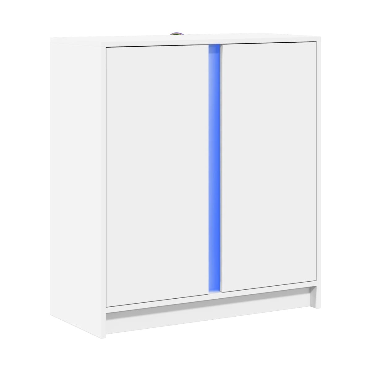 Decora el salón con este moderno aparador con luces LED, que combina fácilmente con muebles de cualquier estilo. Material duradero: La madera de ingeniería tiene una calidad excepcional, con una superficie lisa y también cuenta con fuerza, estabilidad y resistencia a la humedad.Luces LED RGB: El armario buffet está equipado con brillantes luces LED RGB. Con diversos menús personalizables, puedes cambiar el color de las luces sin problemas e incluso hacer que se ajusten automáticamente. Estas luces LED no sólo realzan el aspecto moderno del aparador, sino que también le dan un toque de moda.Amplio espacio de almacenaje: El armario de almacenaje ofrece mucho espacio para guardar a mano y en orden los artículos cotidianos.Función expositora: La resistente superficie del mueble de recibidor es ideal para exponer objetos decorativos, marcos de fotos o plantas.Puertas prácticas: Mantén tus cosas sin polvo ocultándolas tras las puertas del armario auxiliar. Información útil:El producto tiene un conector USB que necesita una fuente de alimentación USB certificada de 5 V (no incluida). Advertencia:Para evitar que vuelque, este producto debe usarse con el dispositivo de fijación a la pared suministrado.