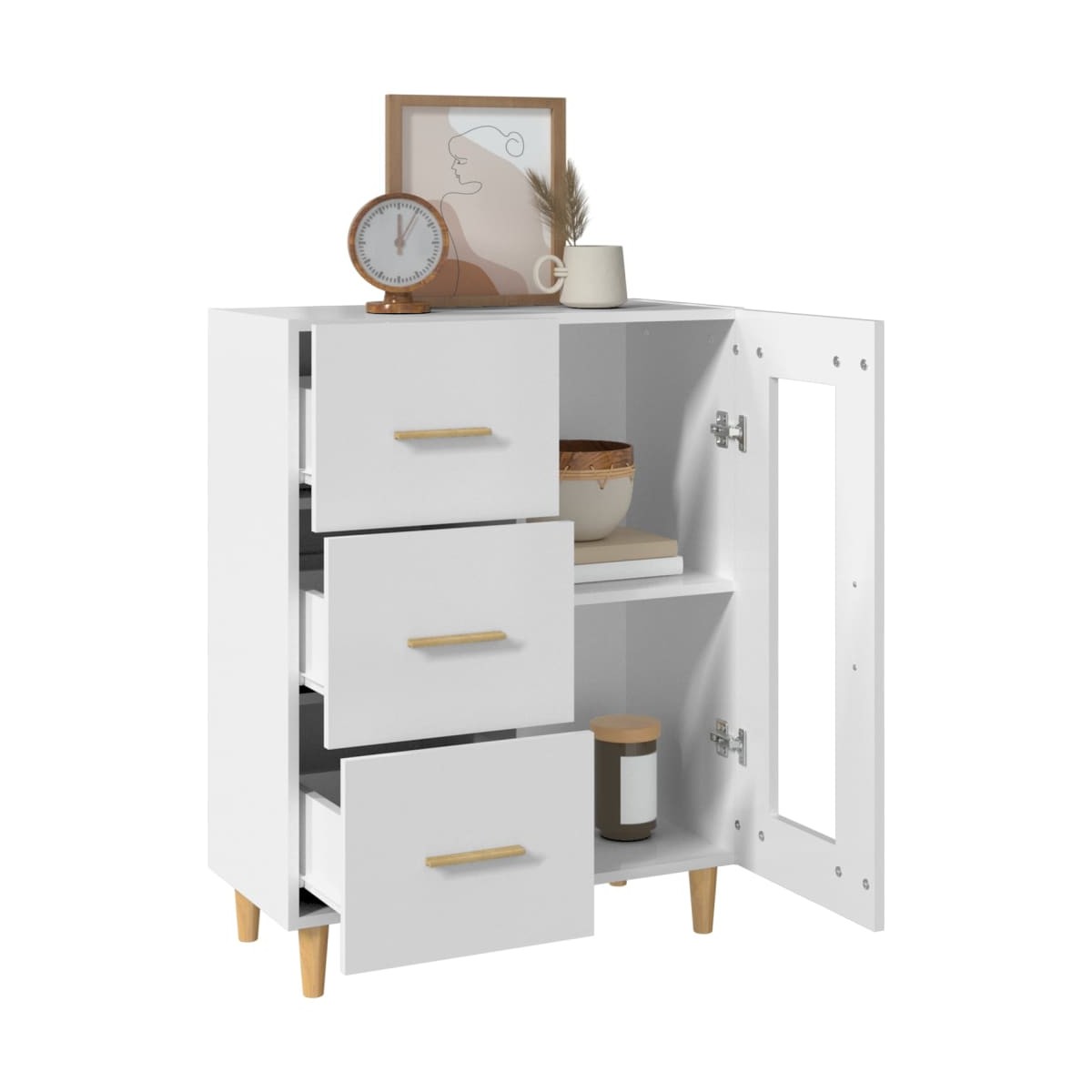 Este clásico aparador será un aporte decorativo y práctico para la decoración de tu hogar. Material robusto: La madera contrachapada tiene una calidad excepcional, con una superficie lisa y también cuenta con fuerza, estabilidad y resistencia a la humedad.Amplio espacio de almacenaje: El armario auxiliar tiene 1 puerta y 3 cajones, que proporcionan amplio espacio de almacenaje para guardar bien organizados tus artículos básicos.Puerta de vidrio visual: El armario vitrina cuenta con una puerta de vidrio visual, que te permite ver tus cosas claramente y encontrarlas con facilidad.Superficie de armario estable: La parte superior de este mueble sirve para colocar tus adornos favoritos como jarrones, macetas, etc. Nota:Cada producto viene con un manual de montaje en la caja para facilitar el montaje.Advertencia:Para evitar el vuelco, este producto debe usarse con el dispositivo provisto para fijarlo a la pared.
