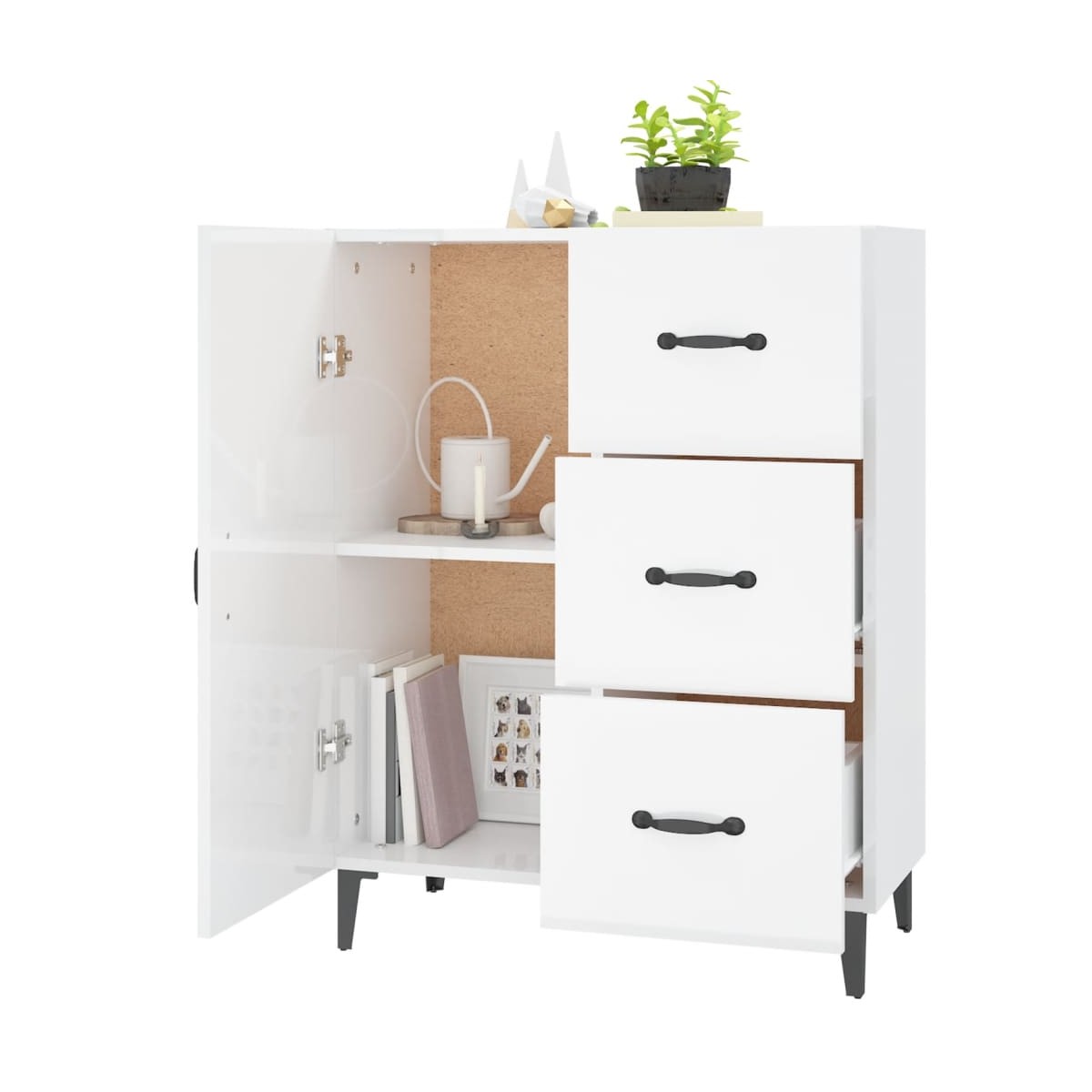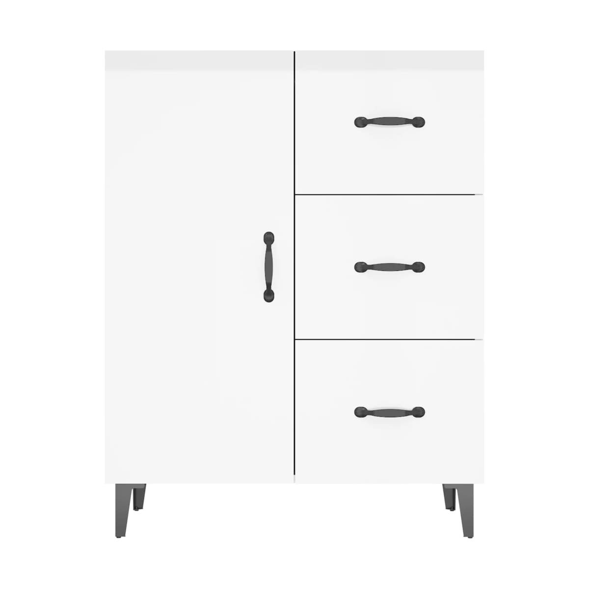 Este clásico aparador será un aporte decorativo y práctico para la decoración de tu hogar. Material de primera calidad: La madera contrachapada tiene una calidad excepcional con superficie lisa y también cuenta con fuerza, estabilidad y resistencia a la humedad.Amplio espacio de almacenamiento: El aparador tiene 1 puerta y 3 cajones, lo que proporciona un amplio espacio de almacenamiento para mantener tus diversos artículos esenciales bien organizados y al alcance de la mano. La parte superior de este mueble es ideal para exponer objetos decorativos.Fácil de limpiar: Este armario de almacenaje es fácil de limpiar con un paño húmedo.Diseño elegante: ¡Este aparador de bufé posee un diseño elegante, que dará un aire de encanto único a la decoración de tu hogar! Advertencia:Para evitar el vuelco, este producto debe usarse con el dispositivo provisto para fijarlo a la pared.