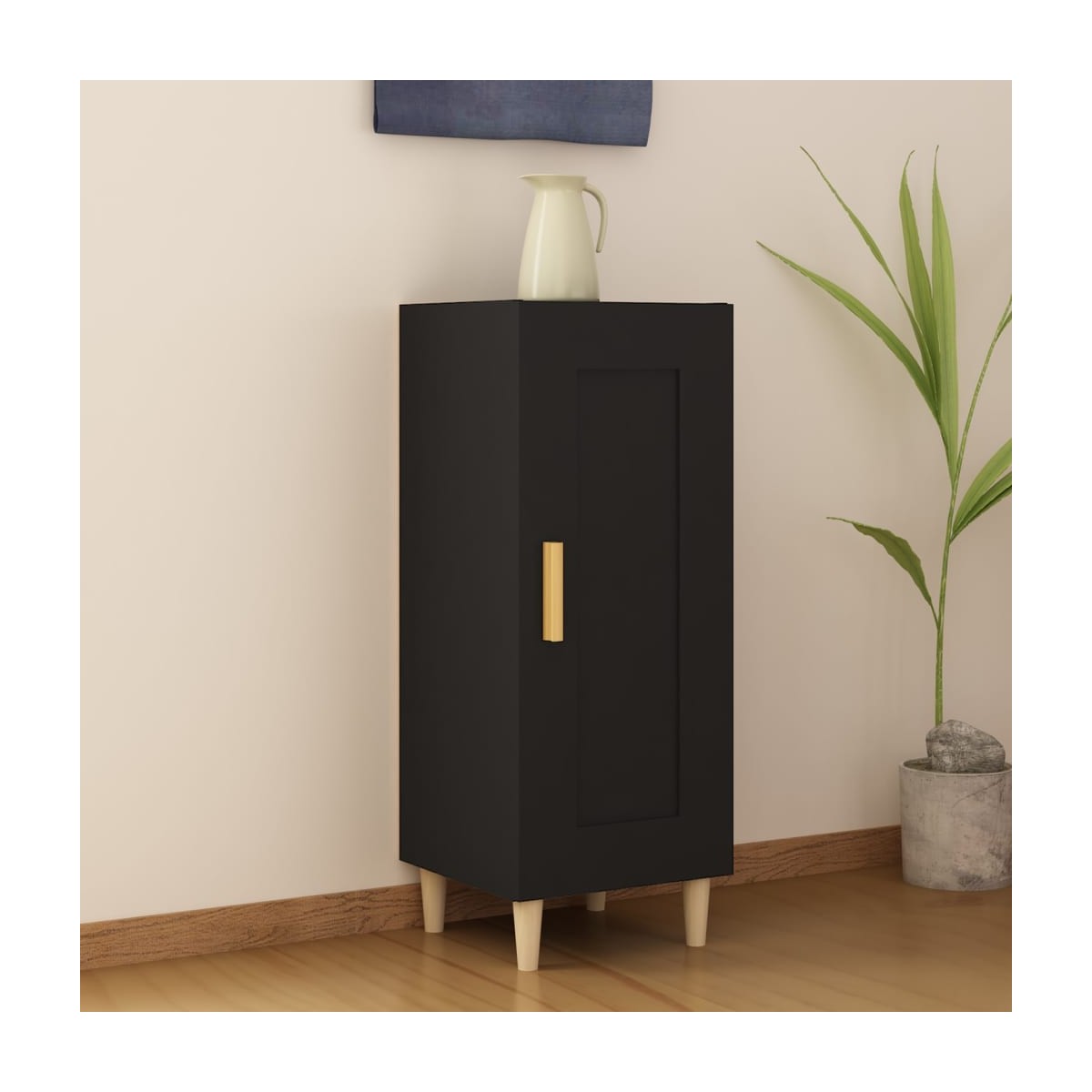 Este elegante y práctico aparador está pensado para satisfacer todas tus necesidades y es un complemento ideal para la casa- Madera contrachapada duradera: La madera contrachapada es de una calidad excepcional, con una superficie lisa, y también presenta fuerza, estabilidad y resistencia a la humedad. Hecho de madera contrachapada, este armario alto es fácil de limpiar.Amplio espacio de almacenamiento: Este mueble aparador, con 3 compartimentos y 1 puerta, ofrece un amplio espacio de almacenamiento para mantener revistas, libros, DVD, dispositivos multimedia y otros objetos decorativos bien organizados y al alcance de la mano.Opciones de montaje flexibles: Las puertas del compartimiento se pueden instalar a la izquierda o a la derecha según tu conveniencia y hábitos personales.Patas de madera: Las patas de madera le dan al armario un aspecto natural y agradable a la vez que garantizan la estabilidad. Combina bien con cualquier decoración de interior. Advertencia:Para evitar el vuelco, este producto debe usarse con el dispositivo provisto para fijarlo a la pared. Nota:Cada producto viene con un manual de montaje en la caja para facilitar el montaje.