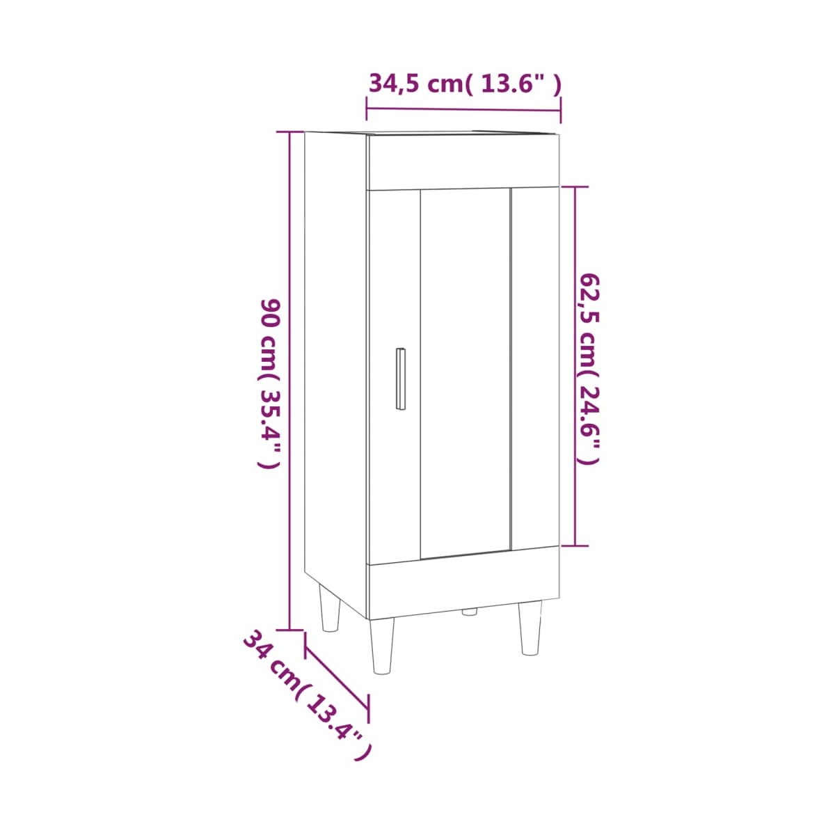 - Dimensiones: 34,5 x 34 x 90 cm (ancho x profundo x alto)