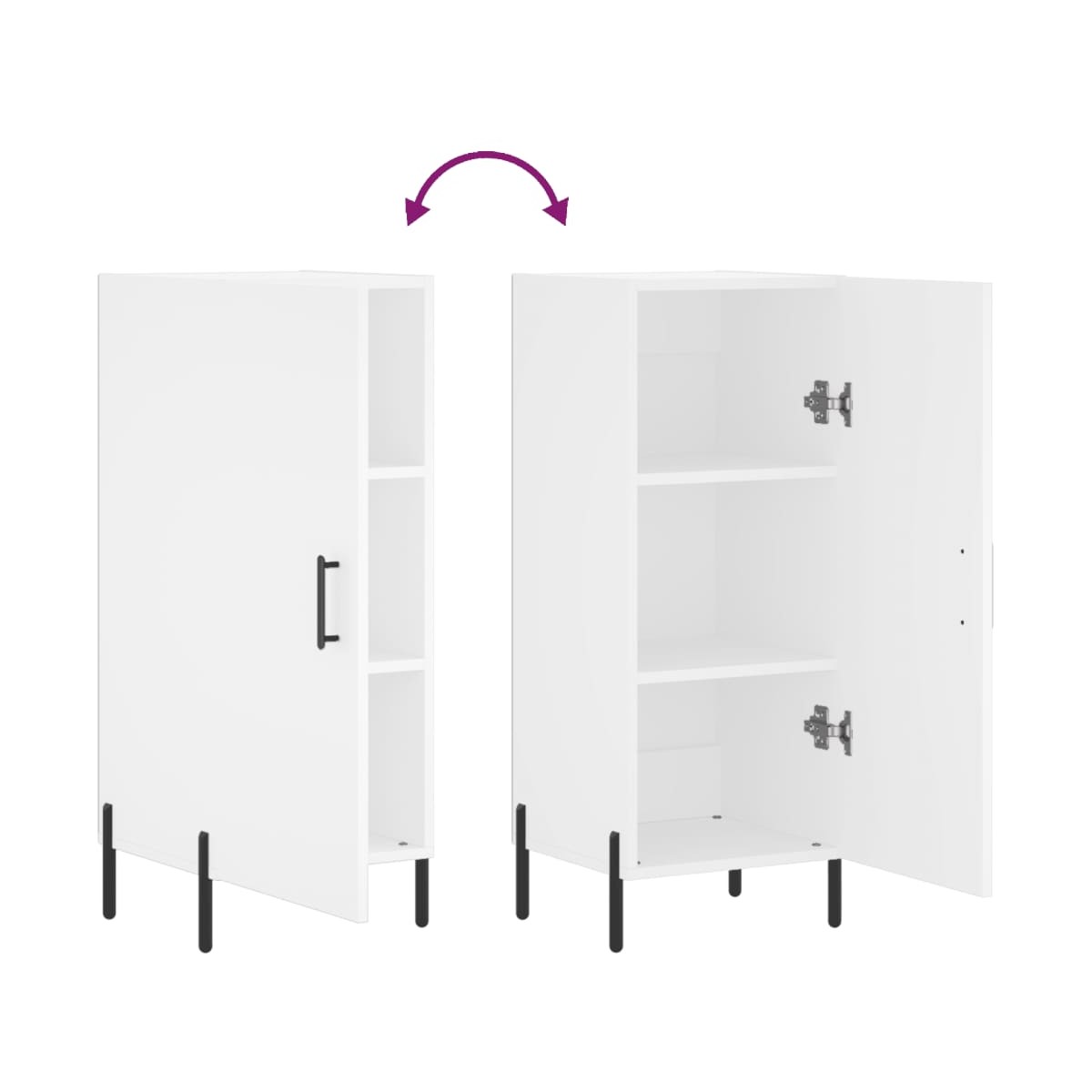 Este moderno aparador, con un aspecto atemporal, está destinado a ser un excelente complemento para la casa. Material duradero: La madera de ingeniería tiene una calidad excepcional, con una superficie lisa y también cuenta con fuerza, estabilidad y resistencia a la humedad. Patas de metal: Las patas de metal le dan un estilo moderno y tranquilo a la casa mientras garantizan su estabilidad. Amplio espacio de almacenaje: Este mueble aparador está diseñado con 3 compartimentos para mantener las cosas organizadas y al alcance. Superficie estable y resistente: La superficie del armario es perfecta para exponer objetos decorativos, marcos de fotos y plantas. Puerta práctica: Evita que tus cosas se llenen de polvo ocultándolas detrás de la puerta. Además, el tirador de la puerta facilita la apertura del mueble de almacenaje. Advertencia:Para evitar que vuelque, este producto debe usarse con el dispositivo de fijación a la pared incluido.