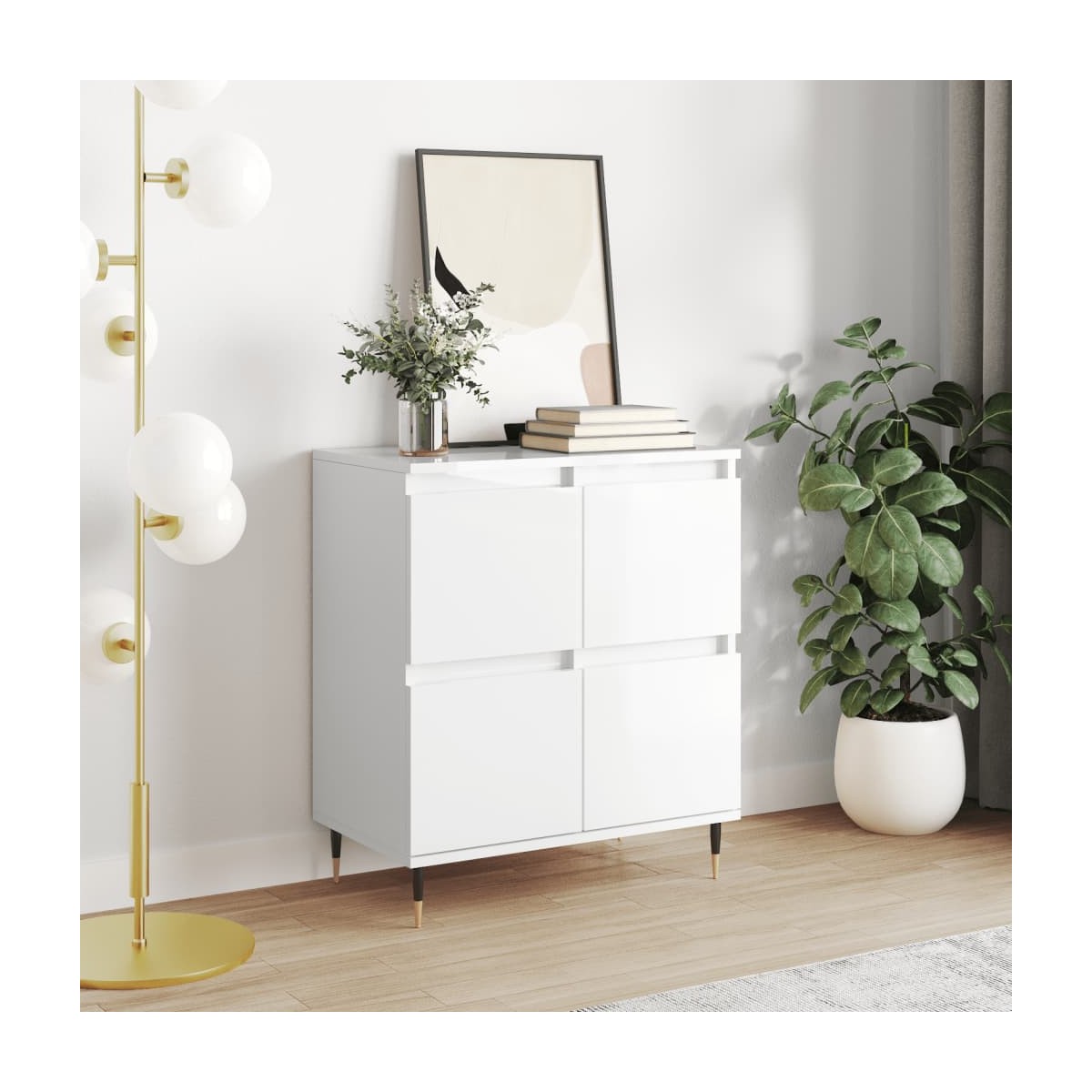 Este aparador de moda, con un aspecto atemporal, está destinado a ser un excelente complemento para la casa. Material duradero: La madera de ingeniería tiene una calidad excepcional, con una superficie lisa y también cuenta con fuerza, estabilidad y resistencia a la humedad. Hecho de madera de ingeniería, el armario de almacenaje es fácil de limpiar con un paño húmedo.Amplio espacio de almacenaje: El aparador ofrece un amplio espacio de almacenaje para mantener tus cosas bien organizadas y al alcance.Función expositora: La superficie del aparador es perfecta para exponer los objetos decorativos, marcos de fotos y plantas.Patas de hierro: Las patas de hierro del armario auxiliar garantizan su solidez y estabilidad. Advertencia:Para evitar que vuelque, este producto debe usarse con el dispositivo de fijación a la pared incluido.