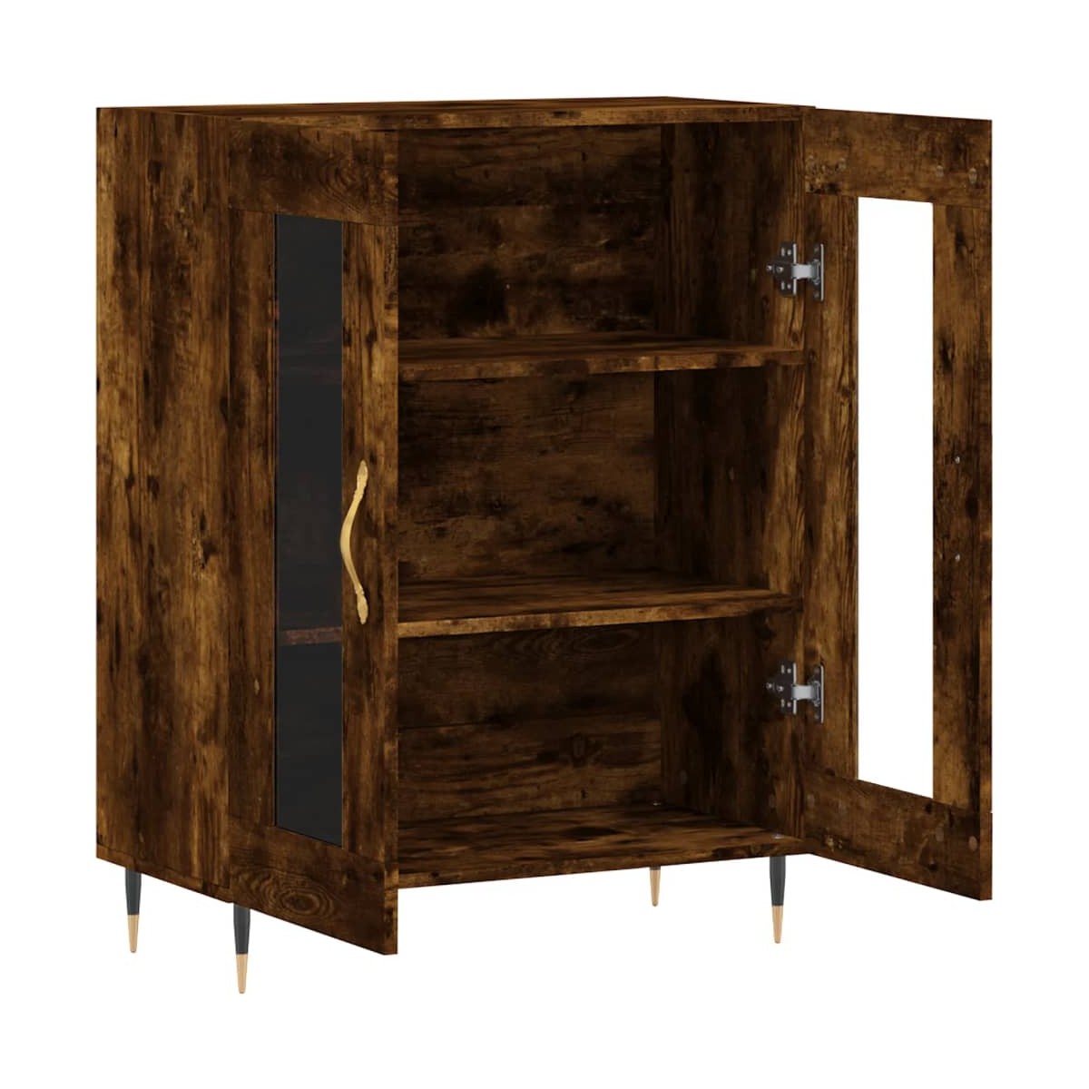 Este aparador clásico, con aspecto atemporal y diseño de vidrio, está destinado a ser un excelente complemento para la casa. Material duradero: La madera contrachapada tiene una calidad excepcional, con una superficie lisa y también cuenta con fuerza, estabilidad y resistencia a la humedad. Hecho de madera contrachapada, el armario es fácil de limpiar con un paño húmedo.Amplio espacio de almacenaje: El mueble aparador ofrece un amplio espacio de almacenaje para mantener tus artículos de uso diario bien organizados y al alcance.Diseño de vidrio: El diseño de vidrio resalta la elegancia del armario y te permite exponer tus cosas favoritas.Función expositora: La superficie del mueble de almacenaje va genial para colocar objetos decorativos, álbumes de fotos o pequeñas plantas.Patas de metal: Las patas metálicas añaden un estilo tranquilo a la casa a la vez que garantizan la estabilidad. Advertencia:Para evitar que vuelque, este producto debe usarse con el dispositivo de fijación a la pared incluido.
