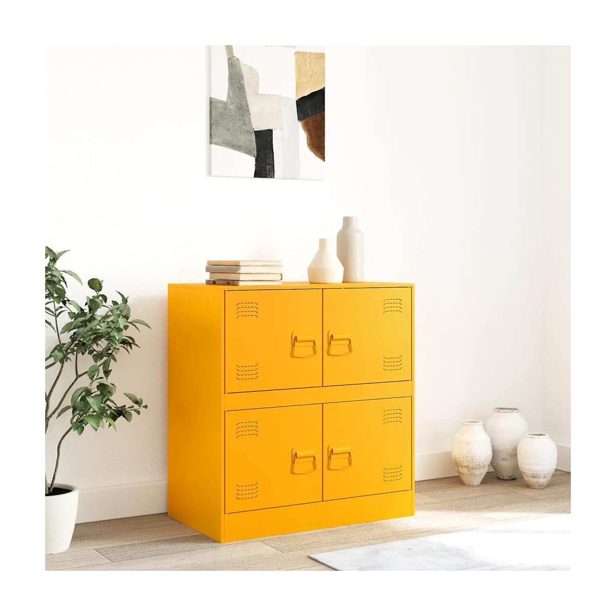 Este robusto aparador está diseñado para ser un foco de atención en tu habitación con un diseño moderno pero práctico. Material estable: La estructura del aparador es de acero laminado en frío. El acero laminado en frío es un tipo de acero con bajo contenido de carbono producido por un método de laminado en frío y procesado a temperaturas ambiente cercanas a las normales. El acero laminado en frío tiene una superficie más lisa, mayor resistencia y mayor precisión.Amplio espacio de almacenamiento: Este aparador ofrece un práctico espacio de almacenamiento para mantener tus revistas, libros, mandos a distancia y otros objetos pequeños bien organizados y al alcance de la mano.Fácil de mantener: La mesa se limpia fácilmente con un paño húmedo y requiere menos mantenimiento.Práctico tirador: El aparador viene con 4 tiradores que facilitan la apertura y el cierre del armario y, al mismo tiempo, añaden belleza adicional. Advertencia:Para evitar que vuelque, este producto debe usarse con el dispositivo de fijación a la pared (no incluido).