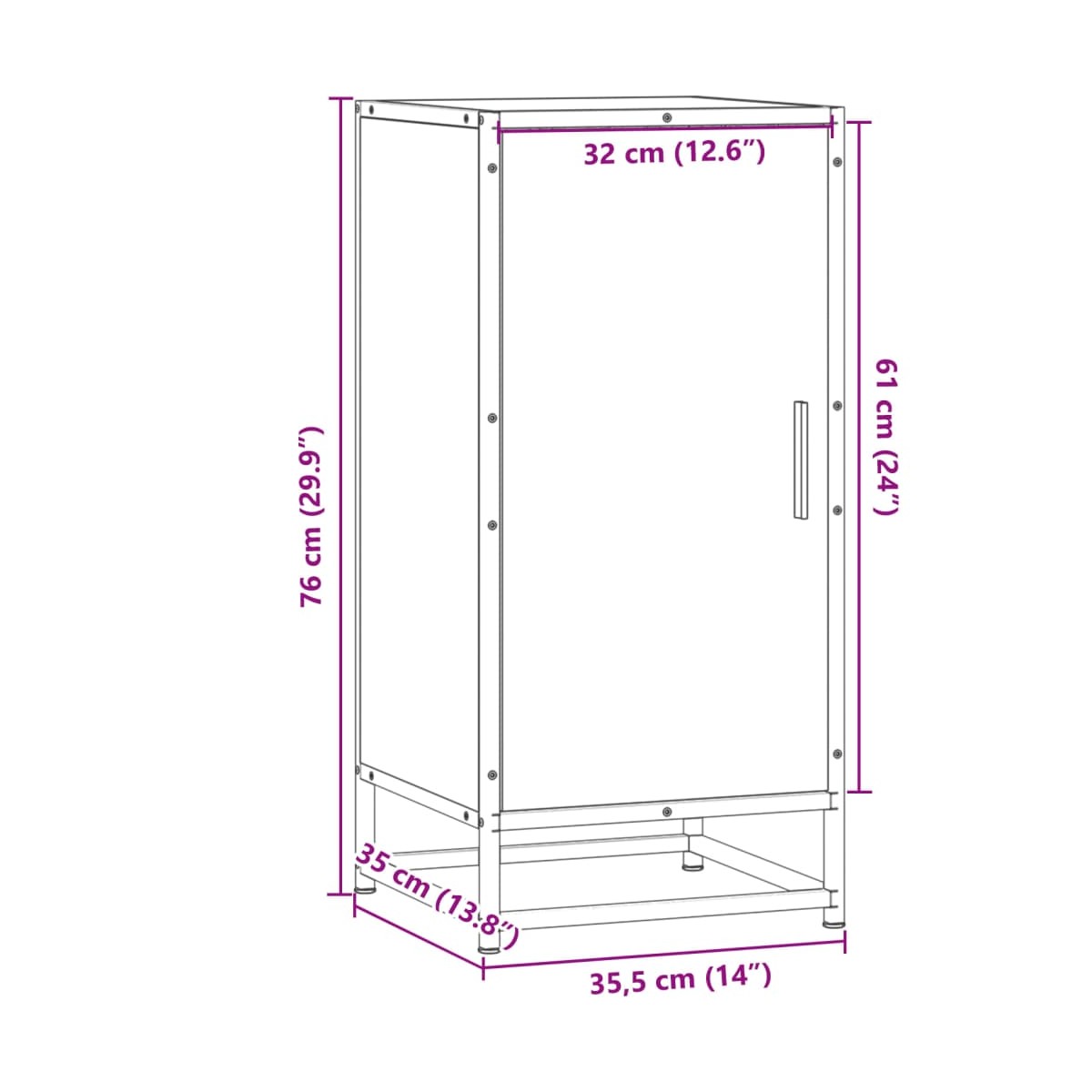 - Dimensiones: 35,5 x 35 x 76 cm (largo x ancho x alto)