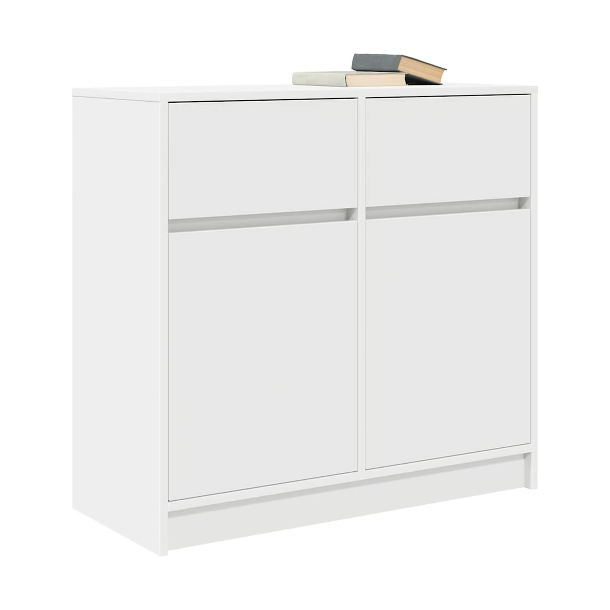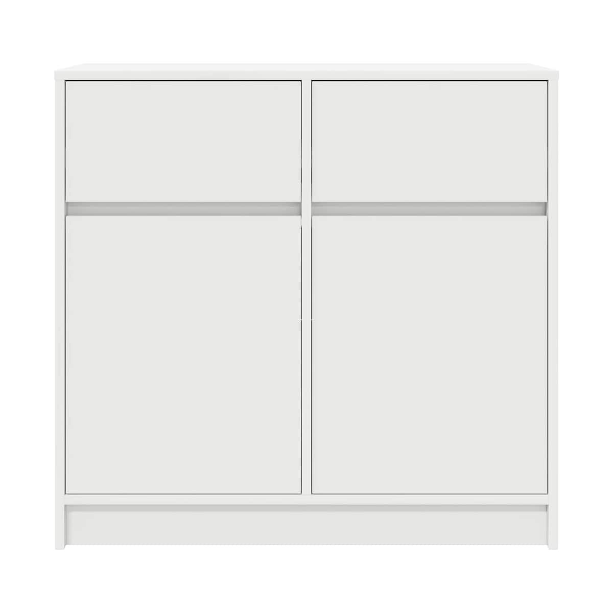 El aparador ofrece un amplio espacio de almacenamiento, lo que ayuda a mantener la habitación ordenada y organizada al tiempo que combina practicidad con estética. Material estable y duradero: La madera de ingeniería es un material duradero y estable con una superficie lisa que es resistente a la humedad, la deformación y la rotura, lo que la convierte en una opción fiable para una variedad de proyectos.Amplio espacio de almacenamiento: el armario de almacenamiento cuenta con puertas y dos cajones, lo que garantiza que sus artículos estén bien organizados y ordenados. Las puertas del armario brindan un espacio de almacenamiento cerrado para mantener sus pertenencias protegidas y fuera de la vista, mientras que los cajones ofrecen espacio adicional para acceder fácilmente a varios artículos.Uso versátil: el aparador es perfecto para cualquier habitación, ya sea como una elegante solución de almacenamiento en la sala de estar, un complemento funcional para el comedor o un práctico organizador en la oficina en casa. Su diseño adaptable complementa varios estilos, lo que lo convierte en una excelente opción para guardar libros, ropa de cama o material de oficina y, al mismo tiempo, mejorar el espacio.Instalación personalizable: el aparador se puede montar en dos configuraciones, lo que permite colocar el cajón y la puerta pequeña en el lado derecho o izquierdo, y la puerta más grande en el lado correspondiente. Esta flexibilidad garantiza que se adapte a sus necesidades y preferencias específicas.Fácil de mantener: Gracias a su superficie lisa, el mueble de pasillo es fácil de limpiar con un paño húmedo y requiere menos mantenimiento. Advertencia:Para evitar que vuelque, este producto debe usarse con el dispositivo de fijación a la pared suministrado.