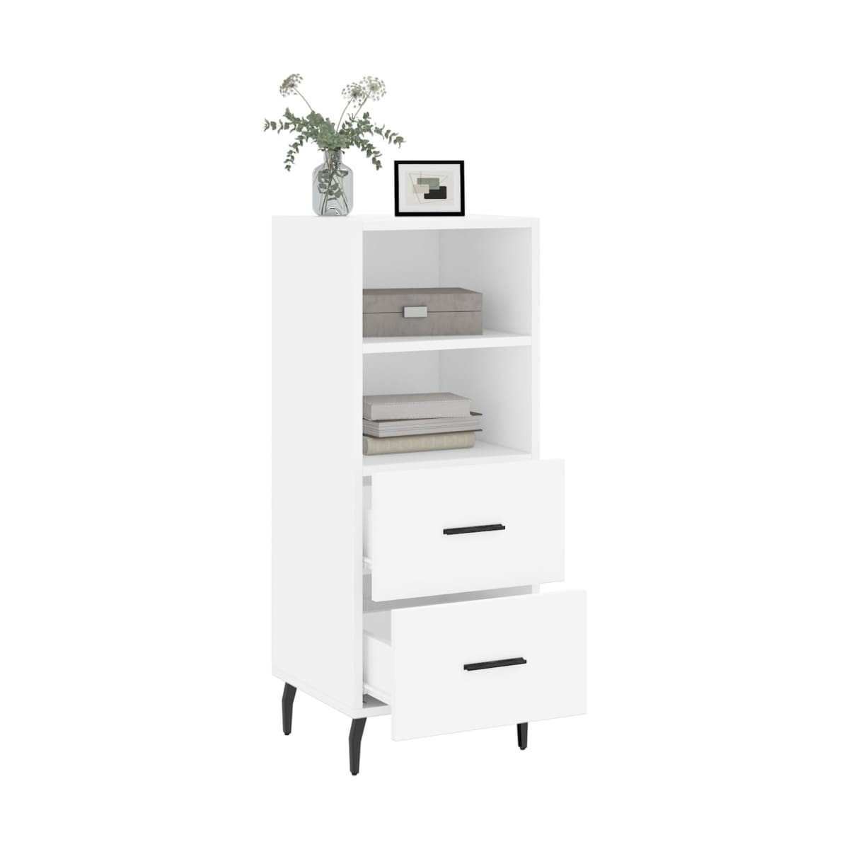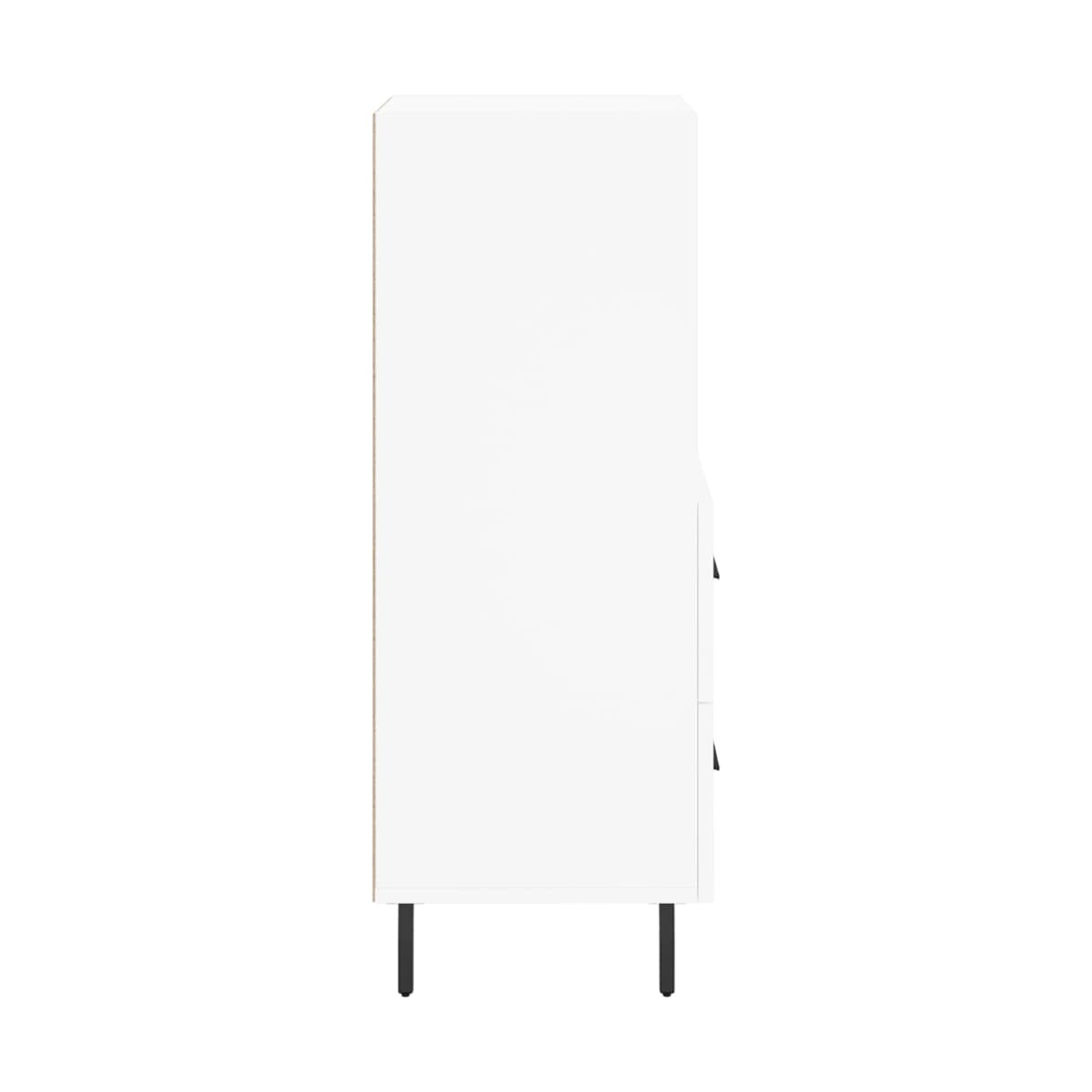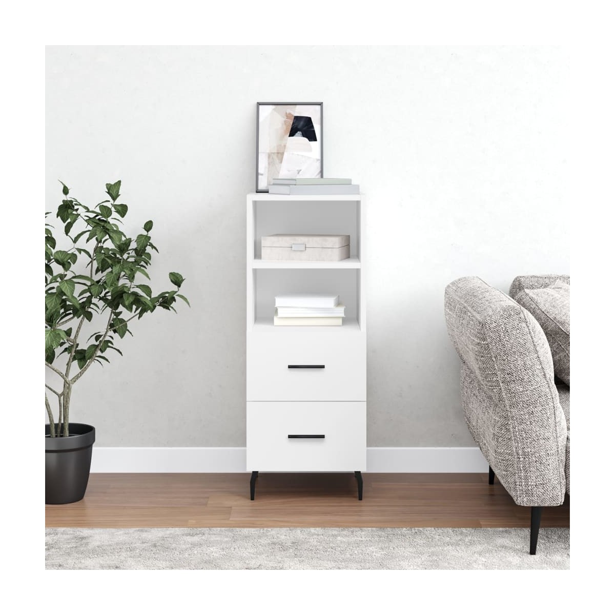 Este moderno aparador, con un aspecto atemporal, está destinado a ser un excelente complemento para la casa. Material duradero: La madera de ingeniería tiene una calidad excepcional, con una superficie lisa y también cuenta con fuerza, estabilidad y resistencia a la humedad. Patas de metal: Las patas de metal le dan un estilo moderno y tranquilo a la casa mientras garantizan su estabilidad. Amplio espacio de almacenaje: Este aparador está diseñado con 2 cajones y 2 compartimentos para guardar las cosas organizadas y al alcance. Superficie estable y resistente: La superficie del armario es perfecta para exponer objetos decorativos, marcos de fotos y plantas. Advertencia:Para evitar que vuelque, este producto debe usarse con el dispositivo de fijación a la pared incluido.