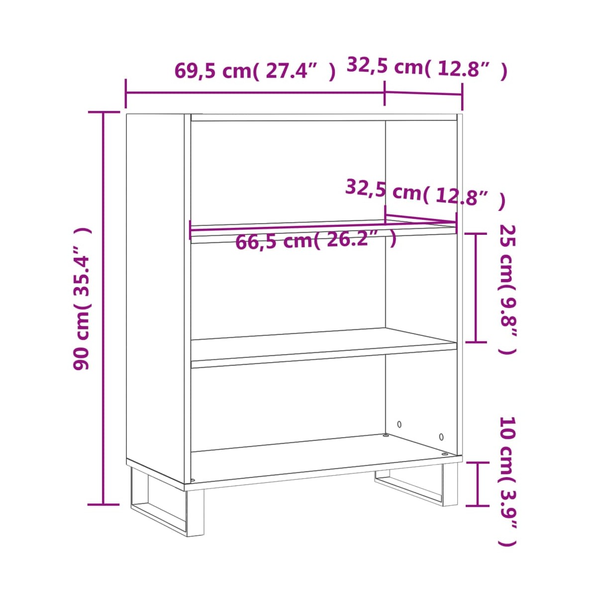 - Dimensiones totales: 69,5 x 32,5 x 90 cm (largo x ancho x alto)