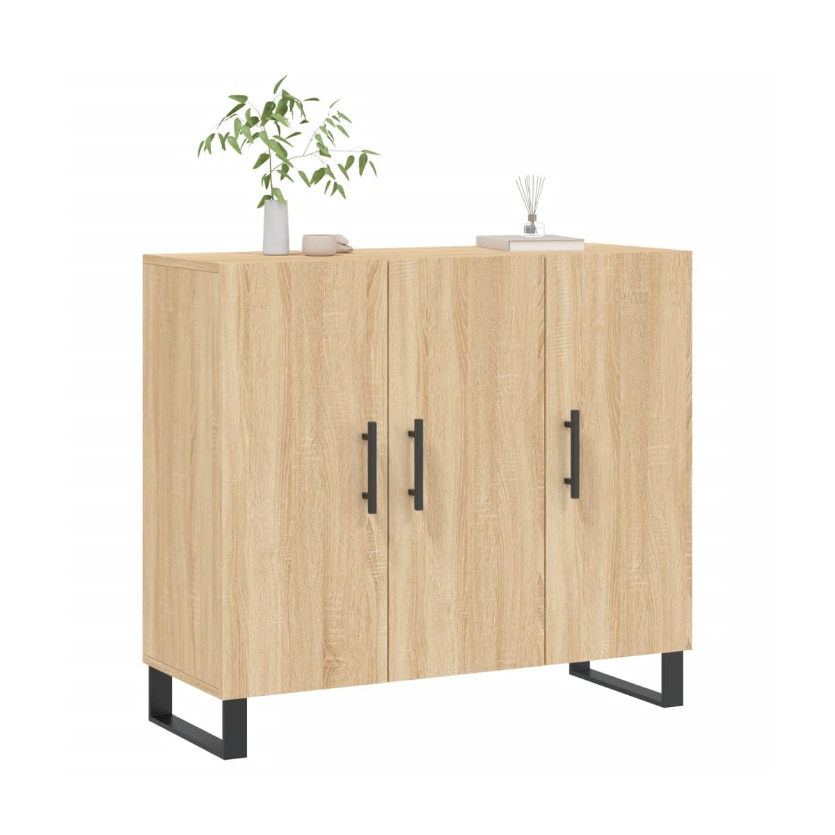Este moderno aparador, con un aspecto atemporal, está destinado a ser un excelente complemento para la casa. Material duradero: La madera de ingeniería tiene una calidad excepcional, con una superficie lisa y también cuenta con fuerza, estabilidad y resistencia a la humedad. Patas de metal: Las patas de metal le dan un estilo moderno y tranquilo a la casa mientras garantizan su estabilidad. Amplio espacio de almacenaje: El mueble aparador ofrece un amplio espacio de almacenaje para mantener tus artículos de uso diario bien organizados y al alcance.Superficie estable y resistente: La superficie del armario es perfecta para exponer objetos decorativos, marcos de fotos y plantas. Puertas prácticas: Mantén tus objetos esenciales libres de polvo ocultándolos tras las puertas. Además, los tiradores de las puertas facilitan la apertura del armario. Advertencia:Para evitar que vuelque, este producto debe usarse con el dispositivo de fijación a la pared incluido.