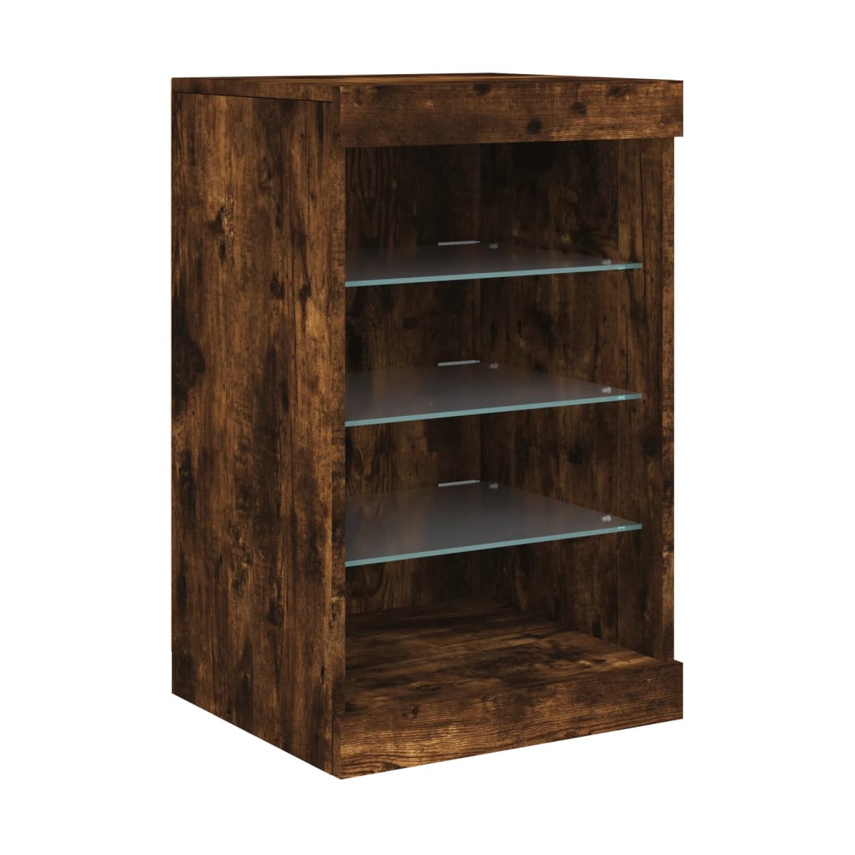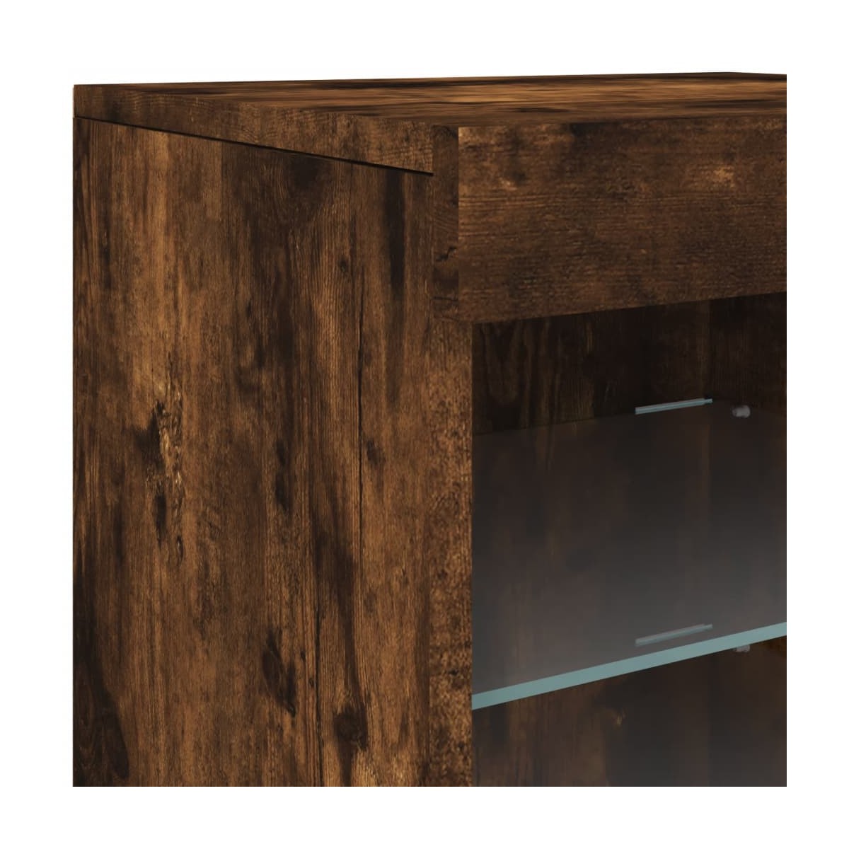 Decora el salón con este moderno aparador con luces LED, que combina fácilmente con muebles de cualquier estilo. Material duradero: La madera de ingeniería tiene una calidad excepcional, con una superficie lisa y también cuenta con fuerza, estabilidad y resistencia a la humedad.Amplio espacio de almacenaje: Este aparador ofrece un amplio espacio de almacenaje para mantener bien organizados y a mano revistas, libros, mandos a distancia y otros objetos pequeños.Función expositora: La resistente superficie del aparador es ideal para exponer objetos decorativos, marcos de fotos o plantas en macetas.Luces LED ajustables: Este armario de almacenaje está equipado con luces LED RGB, que tiene diferentes menús para cambiar el color de la luz y ajustarlo automáticamente, con el fin de que la decoración de la casa sea colorida y bonita. Advertencia:Para evitar que vuelque, este producto debe usarse con el dispositivo de fijación a la pared incluido. Información útil:El producto tiene un conector USB que necesita una fuente de alimentación USB certificada de 5 V (no incluida).