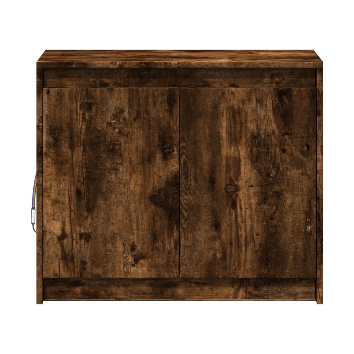 Decora el salón con este moderno aparador con luces LED, que combina fácilmente con muebles de cualquier estilo. Material duradero: La madera de ingeniería tiene una calidad excepcional, con una superficie lisa y también cuenta con fuerza, estabilidad y resistencia a la humedad.Luces LED RGB: El armario buffet está equipado con brillantes luces LED RGB. Con diversos menús personalizables, puedes cambiar el color de las luces sin problemas e incluso hacer que se ajusten automáticamente. Estas luces LED no sólo realzan el aspecto moderno del aparador, sino que también le dan un toque de moda.Amplio espacio de almacenaje: El armario de almacenaje ofrece mucho espacio para guardar a mano y en orden los artículos cotidianos.Función expositora: La resistente superficie del mueble de recibidor es ideal para exponer objetos decorativos, marcos de fotos o plantas.Puertas prácticas: Mantén tus cosas sin polvo ocultándolas tras las puertas del armario auxiliar. Información útil:El producto tiene un conector USB que necesita una fuente de alimentación USB certificada de 5 V (no incluida). Advertencia:Para evitar que vuelque, este producto debe usarse con el dispositivo de fijación a la pared suministrado.